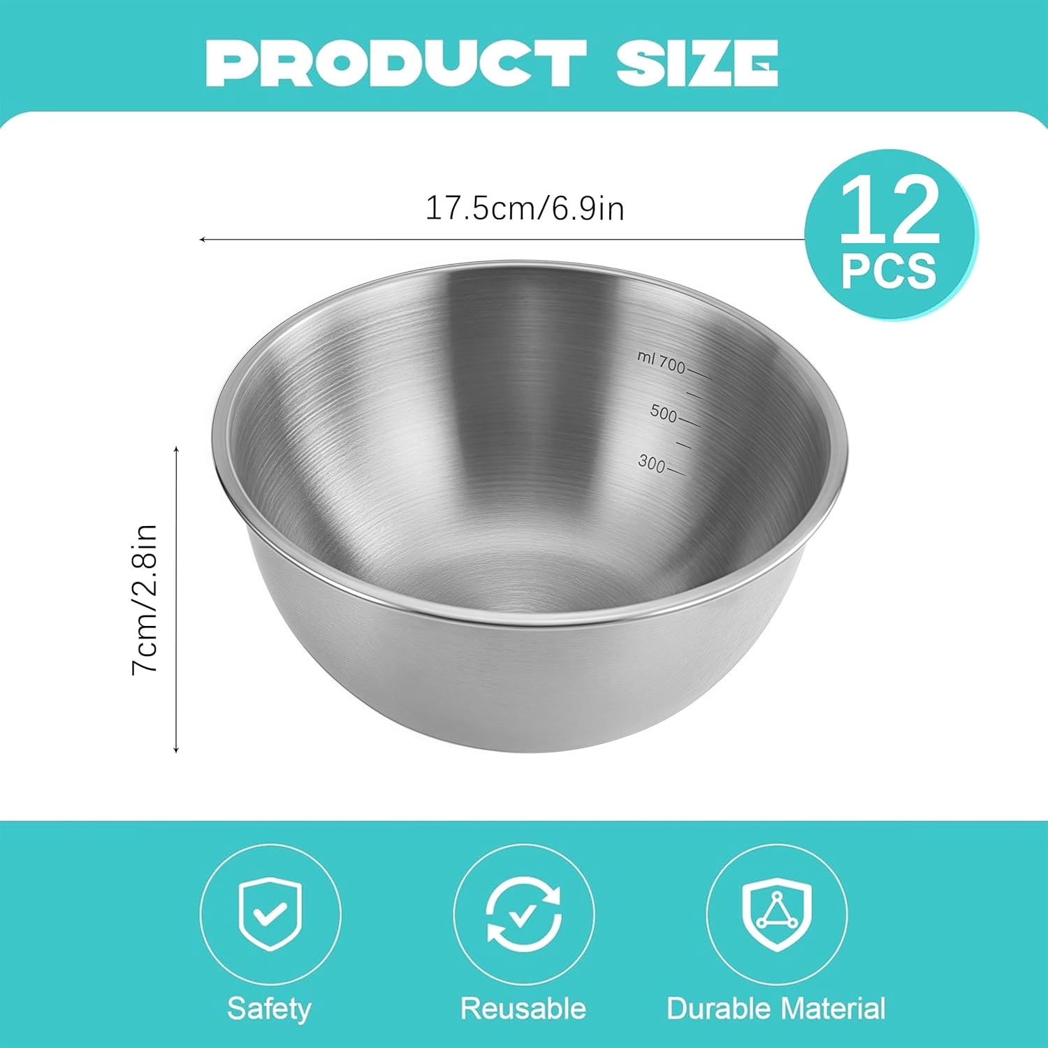 | Included Components | 12 x Stainless steels mixing bowls |