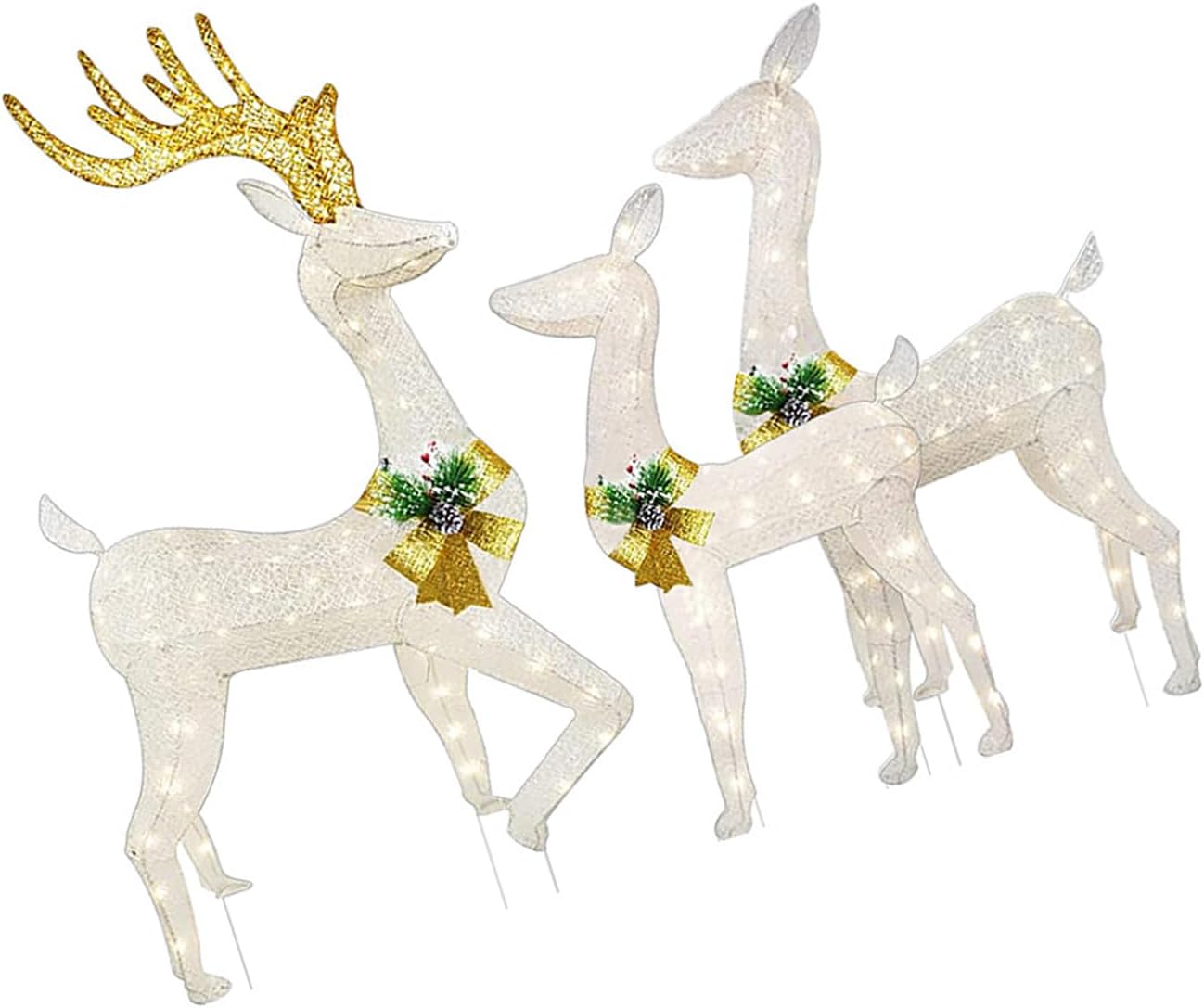 3Pcs Garden Decorative Lights Bright LED Reindeer Stake Light Acrylic Christmas Gardens Backyard Decorations EnduringFeatures:Make of acrylic, it has excellent weather resistance and is not easily faded or damaged by wind and sun exposure.Featuring energy efficient LED bulbs, these lighted stakes create a warm, inviting glow, perfect for enhancing your yard, pathway, or garden. It can present a soft and bright lighting effect at night. Suitable for outdoor places such as family courtyards and gardens, creating a warm festive atmospheres.This reindeer decorative lamp will light up your yard. Placing it in the garden will add a beautiful scenery and create a festive atmospheres for Christmas.Ideal for themed parties or everyday outdoor enhancement, they are crafted to elevates your exterior decor while ensuring durability and stable Specifications Component: AcrylicLarge size: about 46x21cm/18.11x8.27inchMediums size: about 36x16cm/14.17x6.3inchSmall size: about 30x15.5cm/11.81x6.1inchPackage Includes:3Pcs/set Christmas LightsNote:Please allow 1-2cm errors due to manual measurement, make sure that you do not mind before you order. Due to the difference between different monitors, the picture may not reflect the actual color of the item.