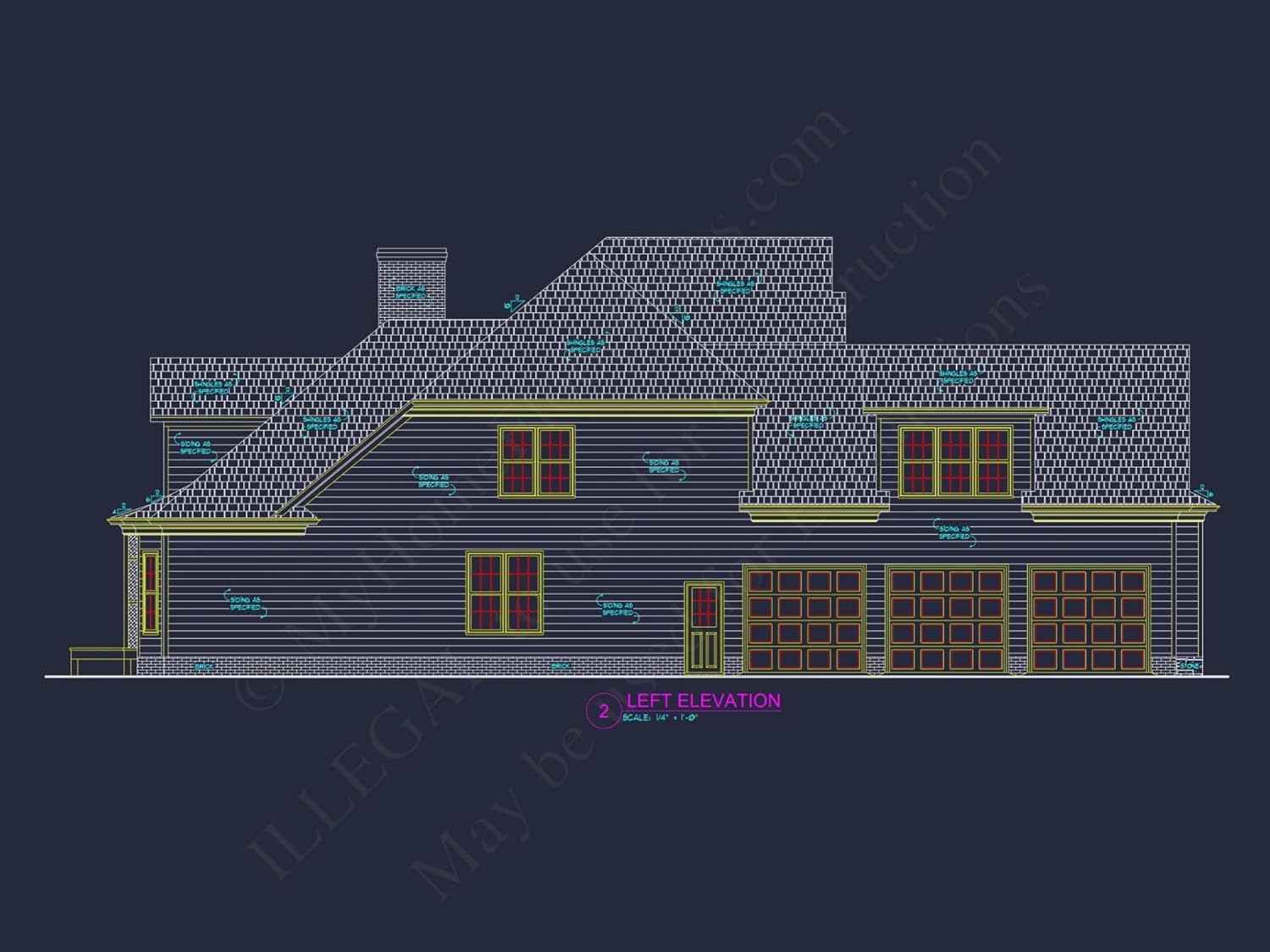 Width: 58′-8″Depth: 81′-6″Htd SF: 3,944Unhtd SF: 855Spacious 2-Story Home Plan: CAD-Ready Floor Plan DesignExplore this spacious 2-story home blueprint with 4 bedrooms, 4.5 baths, 3-car garage, and a CAD-ready floor plan. Perfect for custom architectural designs.This 4-bedroom house plan offers a perfect mix of comfort and functionality. Designed for modern living, it delivers timeless charm and smart space planning.Key Features of the Home PlanLiving Areas - Heated & UnheatedHeated area: 3,944 sq. ft. over two stories.Unheated extras: Covered porches and garage areas.Bedrooms & Bathrooms4 spacious bedrooms, including a first-floor Owner Suite with walk-in closet.4.5 bathrooms for convenience and privacy, strategically placed for ease of use.Interior HighlightsVaulted ceilings create volume and light in living spaces.Open floor plan connects kitchen, dining, and family room areas. View open layouts.Kitchen island and walk-in pantry provide functionality for culinary enthusiasts.Fireplace adds a cozy charm to the family room. Browse fireplace plans.Garage & Storage DetailsGarage Bays: Spacious 3-car garage with front and side entry options.Garage Type: Attached for ease of access.Storage: Additional storage in the garage, attic, and mudroom.Outdoor Living FeaturesCovered front and rear porches, perfect for relaxing or hosting guests.Durable exterior materials, including brick and stone, enhance curb appeal.Architectural Style: Traditional CraftsmanThis design blends timeless materials and thoughtful details, making it ideal for families who appreciate both character and modern efficiency. Learn more about the Craftsman style or explore its roots on ArchDaily.Bonus FeaturesOptional flex room, ideal for use as an office, guest room, or home gym.Smart home wiring available for future customization.Upgraded exterior lighting for added ambiance.Included