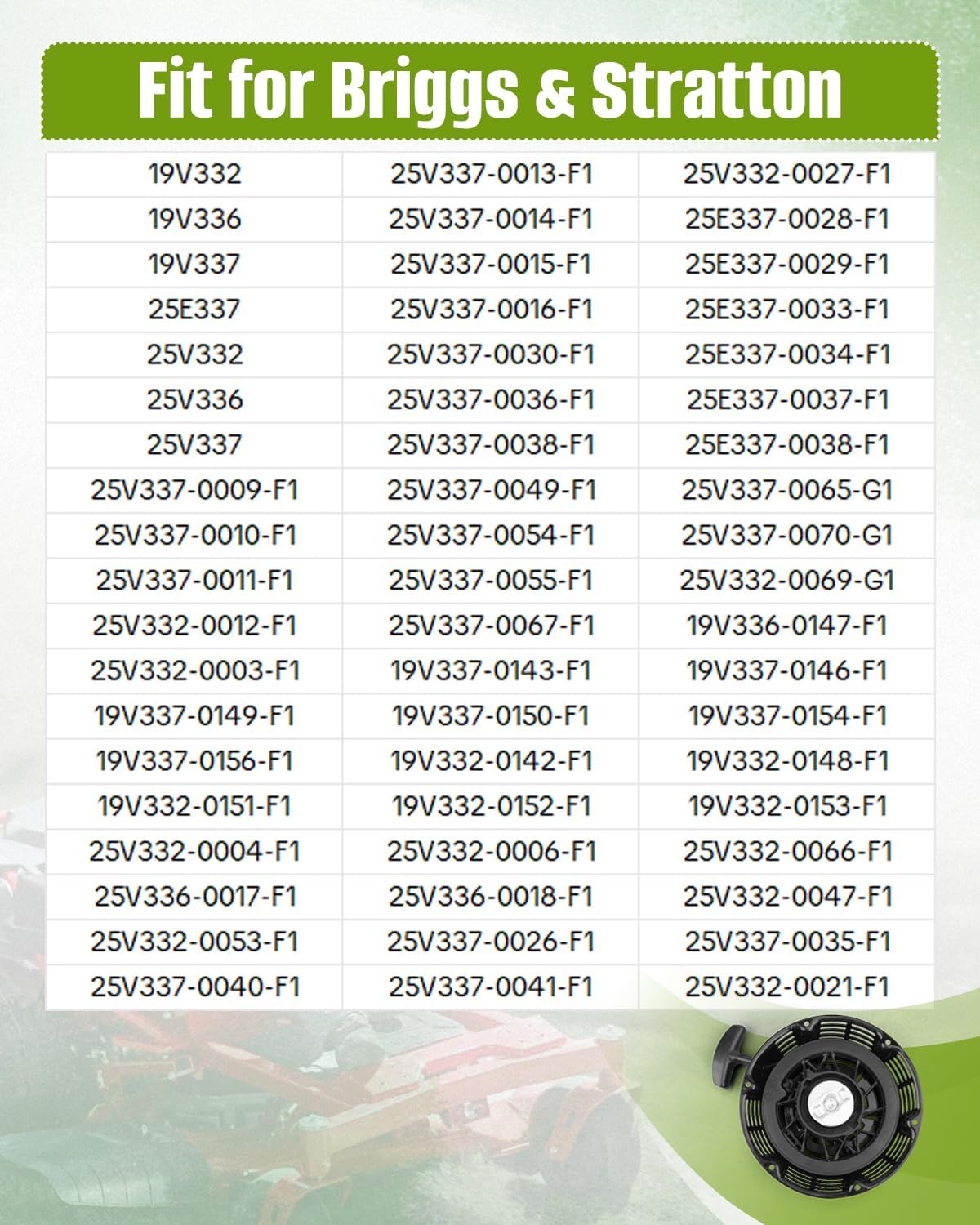 Recoil starter assembly fit for Briggs & Stratton 84004174 recoil starter kit for 14 hp 408cc Vanguard engines, replacing models: 25V337-0009-F1 25V337-0010-F1 25V337-0011-F1 25V337-0012-F1 25V337-0013-F1 25V337-0014-F1 25V337-0015-F1 25V337-0016-F1 25V337-0030-F1 25V337-0036-F1 25V337-0038-F1 25V337-0049-F1 25V337-0054-F1 25V337-0055-F1 25V337-0067-F1 25V332-0003-F1 19V336-0147-F1 19V337-0143-F1 19V337-0146-F1 19V337-0149-F1 19V337-0150-F1 19V337-0154-F1 19V337-0156-F1 19V332-0142-F1 19V332-0148-F1 19V332-0151-F1 19V332-0152-F1 19V332-0153-F1 25V332-0004-F1 25V332-0006-F1 25V332-0007-F1 25V332-0008-F1 25V332-0066-F1 25V336-0017-F1 25V336-0018-F1 25V332-0047-F1 25V332-0053-F1 25V337-0026-J1 25V337-0035-J1 25V337-0040-J1 25V337-0041-J1 25V332-0021-J1 25V332-0027-J1 25E337-0028-F1 25E337-0029-F1 25E337-0033-F1 25E337-0034-F1 25E337-0037-F1 25E337-0038-F1 25V337-0065-G1 25V337-0070-G1 25V332-0069-G1