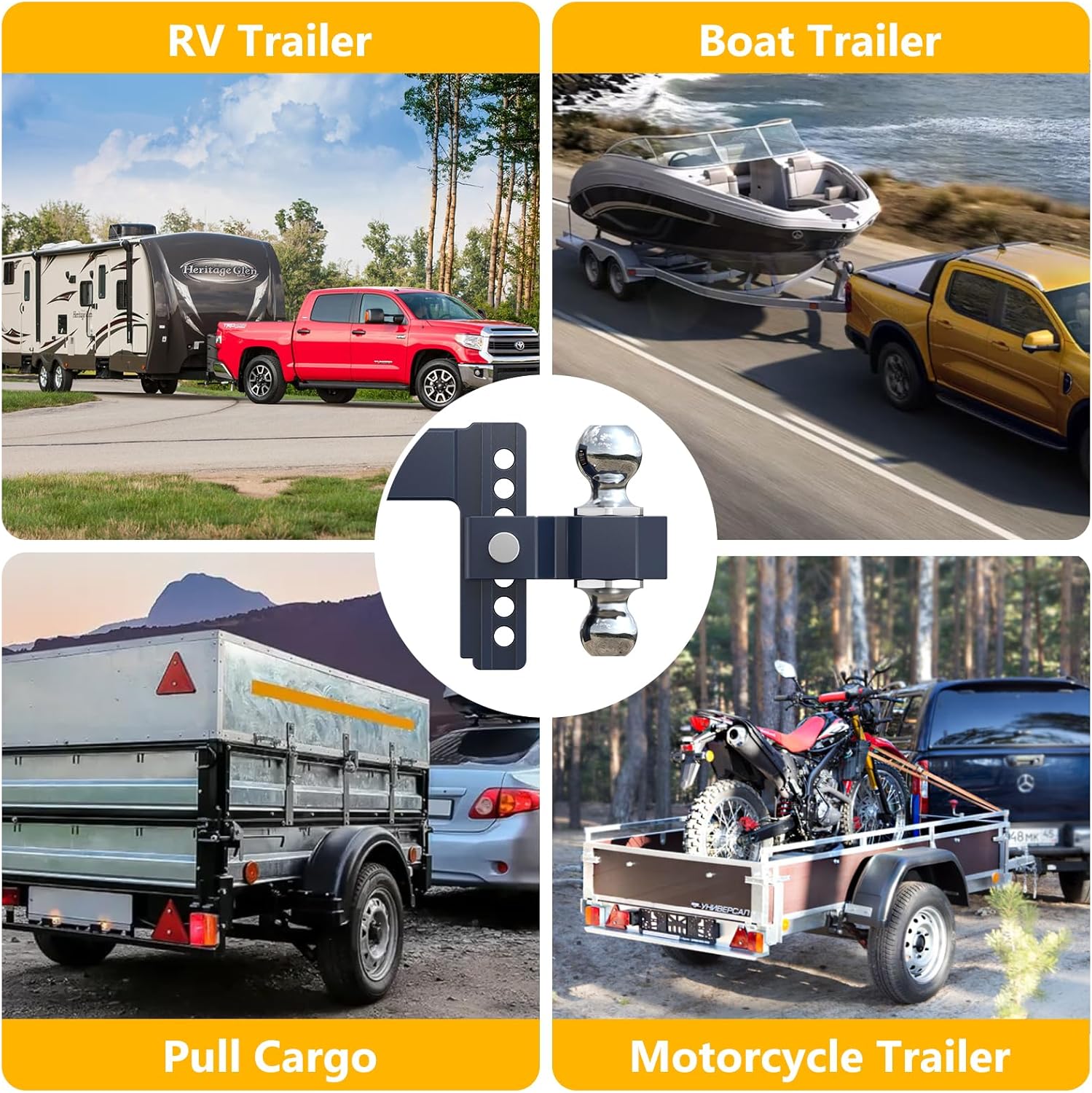 | Compatible with Vehicle Type | Ford F250/F-350,Silverado 2500HD/3500HD,GMC Sierra 2500HD/3500HD,Ram 2500/3500, and More Class 5 Vehicles Equipped with a 2.5-Inch Receiver |