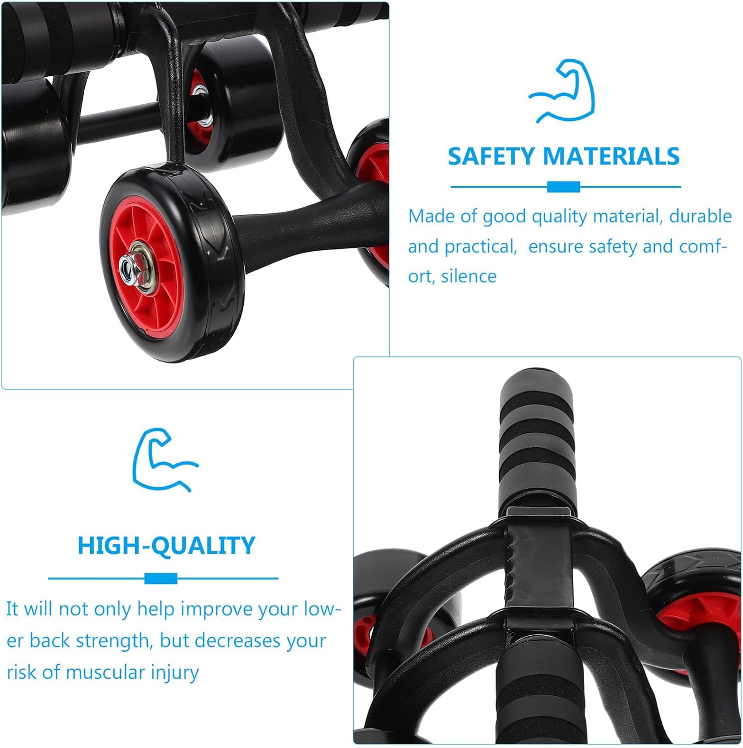 Package Include 1 x Set of Fitness Wheel Features -Product Info:Abdominal chakra - Material: Plastic, Iron, Foams - Size: About 29.50X22.50X13.00cm/11.59X8.84X5.11inch - Color: As shown - Thickened plastic, iron and foams tracks are non-skid and wear resistant workout roller. - Four-wheel more stable and safe for use Exercise roller wheel. - Roll forward to stabilize the brake, stable support of triangular structure Durable Fitness Equipment. - The groove handle is designed to prevent skid and sweat. You can use it with confidence workout abdominal roller. - Widen the tire to , prevent skid and avoid floor damage Roller Wheel For Exercise.Goods DescriptionRoller Wheel Are you looking for a professional, yet muscle exercise equipment wheel? Are you in search of a sturdy, trustworthy tool that can do multiple jobs at once? , ! Our professional ab roller must meet your need.rollout wheel It is the for you