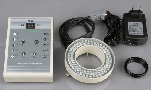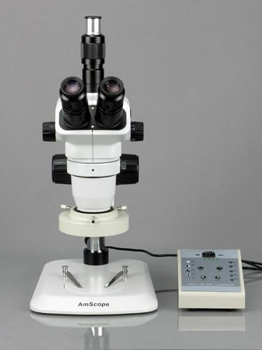 The AmScope ZM-1TNW2-80AM-5M digital professional trinocular stereo zoom microscope has a pair of 10x and 25x extreme-widefield high-eyepoint focusing eyepieces, a 0.67x-4.5x zoom objective, two Barlow lenses, and a pillar stand. The 5MP camera has a CMOS color sensor, a reduction lens, image capture and editing software, and USB 2.0 output to capture or display still or video images on a computer or projector. The microscope has an overall magnification range of 3.35x-225x. The trinocular viewing head has an interpupillary range of 55 to 75mm, a 45-degree inclination to reduce eye and neck strain, and 360-degree rotation to enable sharing. The vertical trinocular port can be used as a C-Mount or 23mm photo port. The EW10x22mm and EW25x9mm extreme-widefield high-eyepoint focusing eyepieces combine with the 0.67x-4.5x zoom objective to provide zoom magnification and a longer working distance for inspecting large-scale specimens that require handling or repair. The microscope includes 0.5x and 2.0x Barlow lenses that can be added to the objective to increase the magnification range. A Barlow lens with a magnification of less than 1.0 reduces magnification and increases the working distance, while a Barlow lens with a magnification greater than 1.0 increases the magnification and reduces the working distance. Focusing eyepieces provide fine focus, high-eyepoint eyepieces ease viewing for users who wear glasses, and dioptric adjustment accommodates individual eye-strength differences. A digital stereo microscope, sometimes called an inspection or dissection microscope, has low magnification and a long working distance that enables users to manipulate the object being inspected, and is used where image capture, detailed records, or documentation is required.The 5MP digital camera has a CMOS color sensor for displaying still microscopy images and streaming live videos to a computer or projector. The camera has 40x magnification and a 0.5x reduction lens that ensures that the display has a similar field of view as the microscope eyepiece. The camera can be mounted in a C-Mount or any 23mm eye tube. The camera includes image capture and editing software that provides still image and live video capture and editing capability, including measurement functions. The software supports JPG, TIFF, GIF, PSD, WMF, and BMP file formats and is compatible with Windows XP, Vista, 7, and 8; Mac OS X; and Linux. Camera drivers are compatible with Windows XP, Vista, 7, and 8; Mac OS X; and Linux. The software includes Windows APIs for native C/C++, C#, DirectShow, Twain, and LabVIEW that enable custom application development. The camera has a USB 2.0 data port (cable included).The removable 80-bulb LED ring light has eight separate zones to independently control light intensity and direction, and five programmable memories to remember settings for quick access across tasks. The ring light provides bright, cool light for working with temperature-sensitive or live specimens, and shadow-free illumination. A rheostat controls the amount of light emanating from the lamp. Power and adjustment controls are located on a control box to speed adjustments. The ring has a 2-5/8" (66mm) inside diameter and a 4-3/8" (110mm) outside diameter. The light has an optimum working range of 2-3/8 to 5-1/2" (60 to 140mm). It has a 100,000-hour life span and a 110V-240V variable power supply. The pillar-style stand secures the head for precise focusing. Bilateral coarse focus eases use for left- and right-handed users. The extra-large table stand has a reversible black and white stage plate that provides contrast with light and dark-colored specimens, and stage clips to secure the specimen in place. The stage plate has a 3-3/4" diameter (95mm). The steel pillar is 12" (305mm) high and has a 1-1/4" (32mm) diameter. The stage is 3/4 x 10 x 12-1/2 inches/20 x 280 x 320mm (H x W x D, where H is height, the vertical distance from the lowest to highest point; W is width, the horizontal distance from left to right; D is depth, the horizontal distance from front to back).SpecificationsHeadTrinocularMagnification range3.35x-225xZoom objective power0.67x-4.5xEyepieces (DIN, 30mm)EW10x22mm, EW25x9mm high-eyepoint focusingTrinocular portC-Mount or 23mmField of view1-1/2"Optical working distanceUp to 8"Microscope standPillar-style table standHead movementX-axisIllumination typeEpiscopic (reflected)Light sourceEight-zone LED ring lightPower110V-240VCamera SpecificationsResolution5MP (2592 x 1944 effective pixels)Image typeStill image and video display and captureCamera typeBrightfieldCamera sensor1/2.5" Aptina MT9P001 CMOS (color)Magnification40xReduction lens0.5xMounting size23mm or C-MountFrame rate60 fps at 640 x 480; 18 fps at 1280 x 960; 5 fps at 2592 x 1944Computer connectionUSB 2.0 (backward compatible on PCs only)File formatsJPG, TIFF, GIF, PSD, WMF, BMPSoftware packageImage capture and editing for Windows XP, Vista, 7, and 8; Mac OS X; and LinuxCamera driver compatibilityWindows XP, Vista, 7, and 8; Mac OS X; and LinuxMicroscopes are instruments used to enhance the resolution of an object or image. Types include compound, stereo, or digital. Compound microscopes use a compound optical system with an objective lens and an eyepiece. Stereo microscopes show object depth in a three-dimensional image. Digital microscopes are used to display an image on a monitor, rather than looking through a lens. Microscopes can have monocular (one), binocular (two), or trinocular (three) eyepieces, with varying magnification abilities. Magnification ability refers to the size of an image. Resolution, also known as resolvant power, refers to the clarity of the image. The interaction between field of view (FOV), numerical aperture (NA), and working distance (WD) determines resolution. Microscopes can control magnification through a fixed focus, or through a range of adjustments. They can also utilize LED, fluorescent, and mirror light sources to help control vi