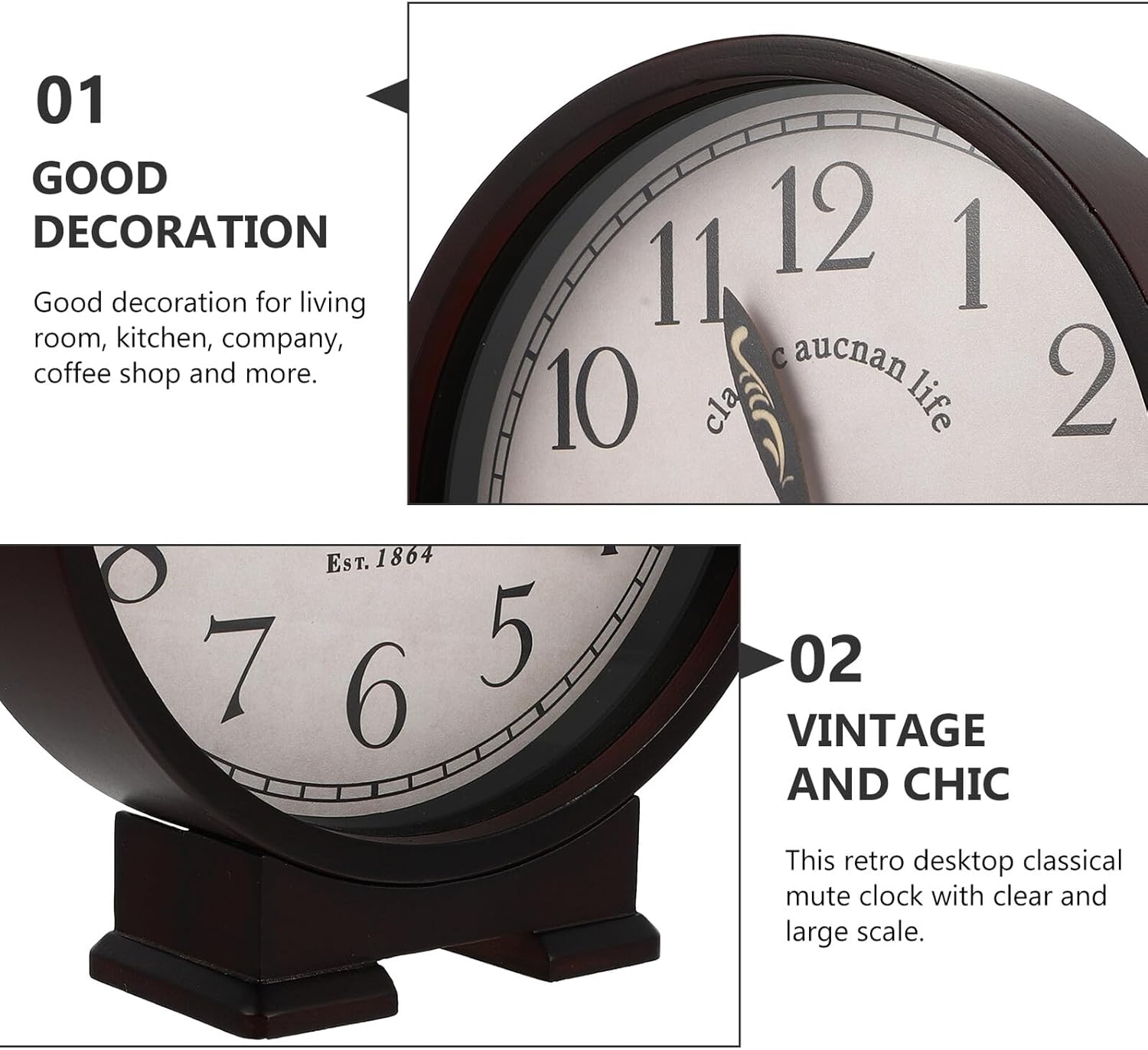 Package List 1 x desktop decorative clock Features - Battery: One AA battery (Not included) clock vintage -Product Info:Retro desktop clock - Material: Glass, wood, electronic components - Creative and retro desktop decorative clock is perfect for cafe shop, club, hotel, bedroom, living room decoration small vintage desk clock. - Combination of traditional and modern technology, it is very suitable for many furnishing styles decorative small desk clock. - This retro clock decor is made of quality material, which is sturdy, and . - Suitable for using on many occasions, such as bedroom, living room, study room, office and clock model. - ColorBlack - The reasonable size to create a good impression and display its retro and elegant look.Goods DescriptionHome Clock Ornament This creative clock designed with delicate look, suitable for room decoration.Vintage Clock Ornament Retro and , a good gift for friends and family members.decorative clock This artistic silent tabletop clock ornament adopts elaborate and creative shape design, made of wood, glass and electronic components material, and practical