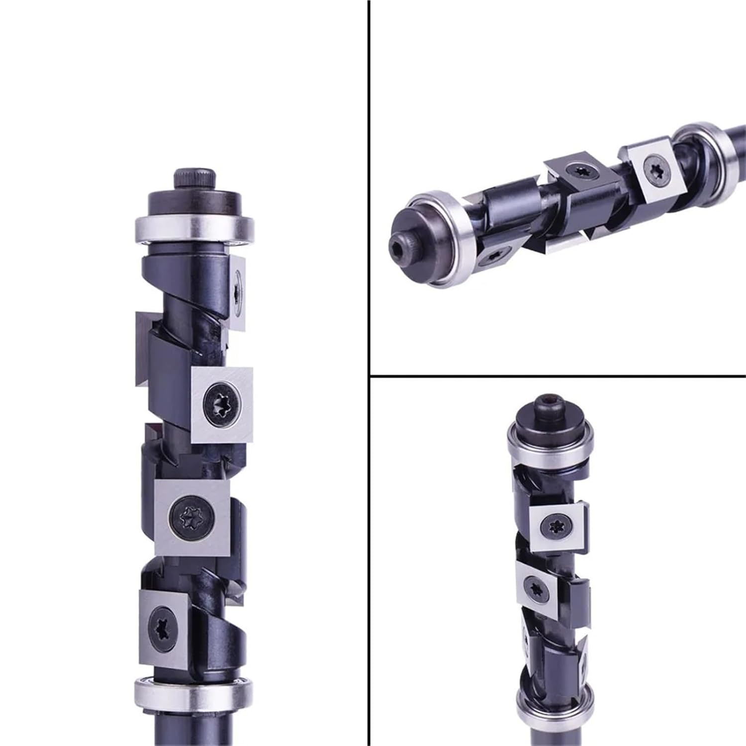 End MillsCarbide Insert Flush Trim With Top Bottom Bearings 19mm Dia X 1/2inch Shank Template Router Bit For Woodwork Trimming 1PcsSpecificationsCutting Diameter: 19mmCutting Length: 65mmShank Size: 1/2 inch(12.7mm)Includes 7pieces of (12mmx12mmx2.2mm) carbide insertsWhat's in the Upgrade:1,Black Steel Body Coating:We've taken it a step further by introducing a sleek black coating to the steel body. This not only enhances the router bit's aesthetics but also offers increased durability and resistance to wear.2,Streamlined Groove Design:The overall design of the carbide insert groove has been refined for a more robust appearance. This redesign not only adds to the visual appeal but also enhances performanc.3,Unique Design:This pattern flush trim router bit has been meticulously crafted with top and bottom bearings and features replaceable carbide blades fixed in a spiral pattern. This distinctive design empowers you to achieve precise trimming effortlessly.4,Industrial-Grade Quality:Crafted with an industrial super-strength steel body and robust tungsten carbide blade, this router bit boasts exceptional hardness and durability. It's ready to tackle any wood type with ease.5,High Precision:Each bit is CNC machined and coated for reduced friction, while the precision guide bearings ensure smooth and accurate cuts. Expect outstanding results for your woodworking projects.6,Compatible Equipment and Materials:Whether you're using a table-mounted router or a handheld one with a 1/2-inch collet, this router bit fits the bill perfectly. It's adept at trimming particle board, chipboard, MDF, density board, melamine board, veneer plywood (laminate), and solid wood.Degree : R0.1Diameter : 12.7MM(1/2")Coating : NONEModel Number : Trimming Router Bit With Bearing IWTBBUType : Slab Milling CuttersMaterial : CarbideOverall Length : 126MMModel Number : Trimming Router Bit With Bearing IWTInserts : 7pcs Carbide insertOverall Length : 127MMCutting Length : 65MMShank diameter : 12.7MM(1/2")Cutting Diameter : 19MMMaterial : CarbideSurface : Wood