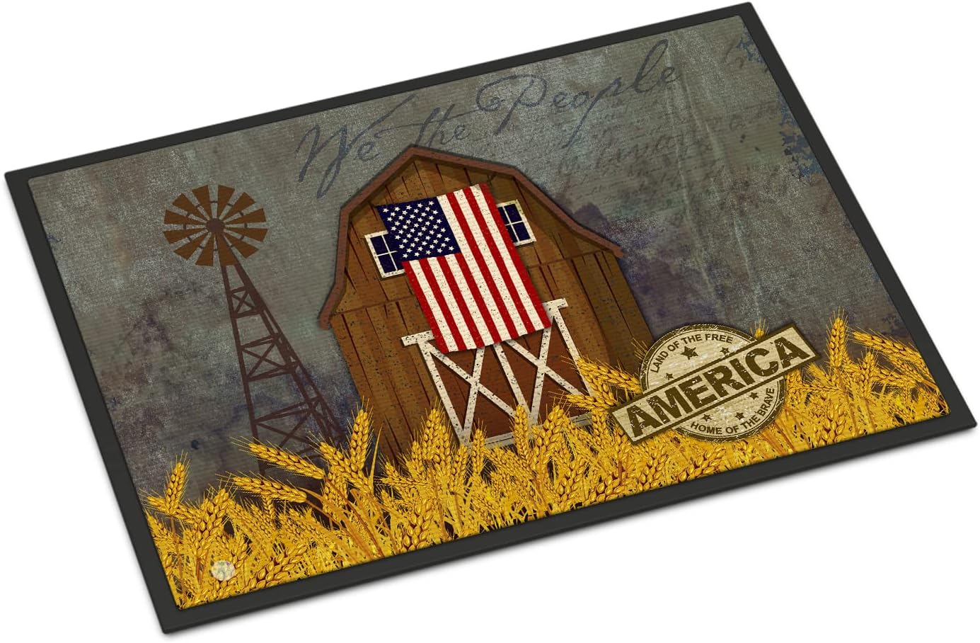 Welcome your family and friends with this Artwork mat in full color. This action backed mat with hold up in almost any weather condition. This door mat measures about 24 inches by 36 inches and has a black binding tape to hold it's many layers together. The top layer is a polyester felt that is dyed with the image that you see on the mat. The next couple of layers give the mat stability and the bottom of the mat is rubber that has been stamped to help prevent slipping. To clean this mat, hose it off with a water hose or use a powerwasher. Do not use any cleaner that produces suds.