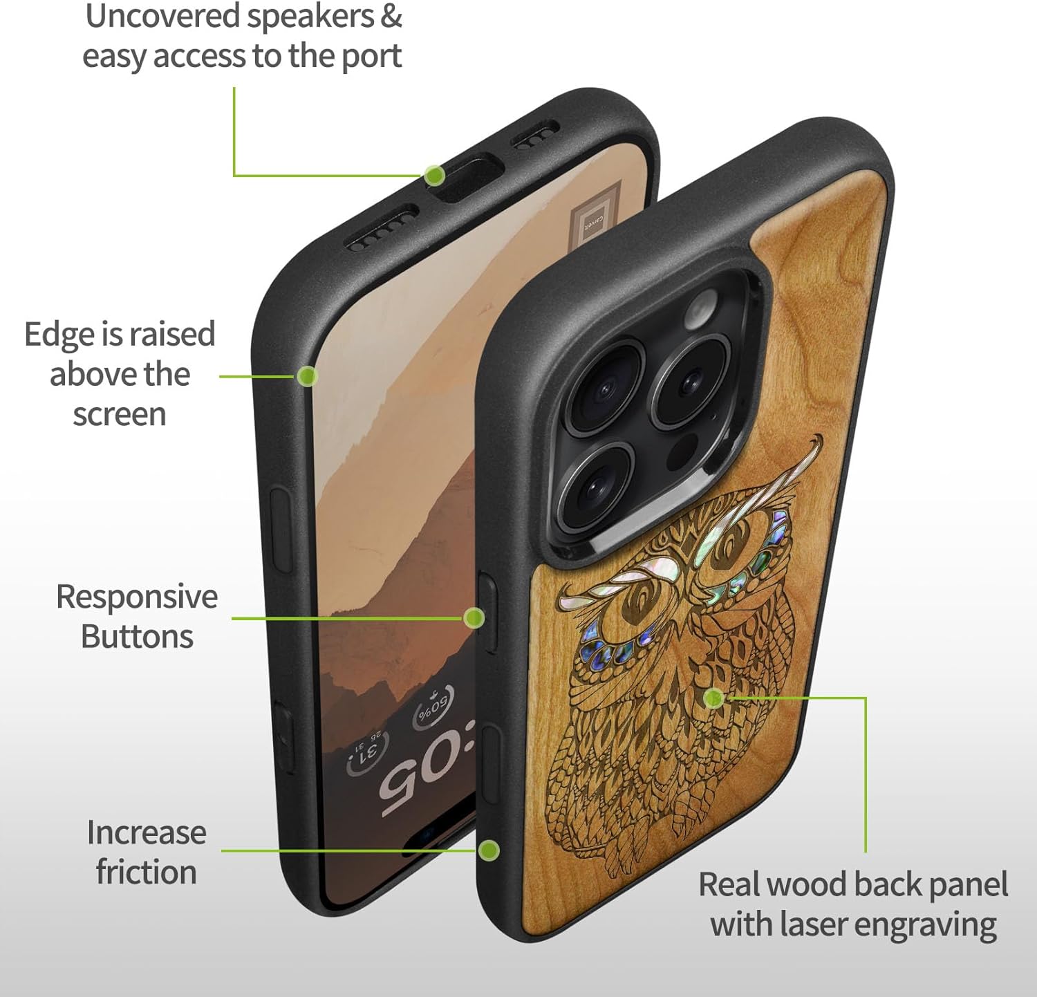 | Additional Features | Natural solid wood back panel and laser engraving, The unique solid wood keeps the palm dry and prevents fingerprints from sticking to the surface of the case, keeping it clean and elegant |