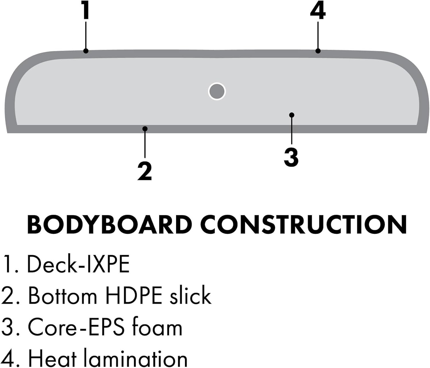 The Coconut bodyboard requires no prior surfing experience and is perfect for the whole family. Don't let the standard boogie board shape fool you, this board is made from top notch materials and is built to last. The IXPE deck and pro slick hard bottom are heat laminated on a durable EPS foam core that will keep you catching waves all summer. The crescent tail increases the fluidity of the board when tackling the conditions of the ocean. This package comes standard with a fabric leash and is available in a wide range of sizes and colors.