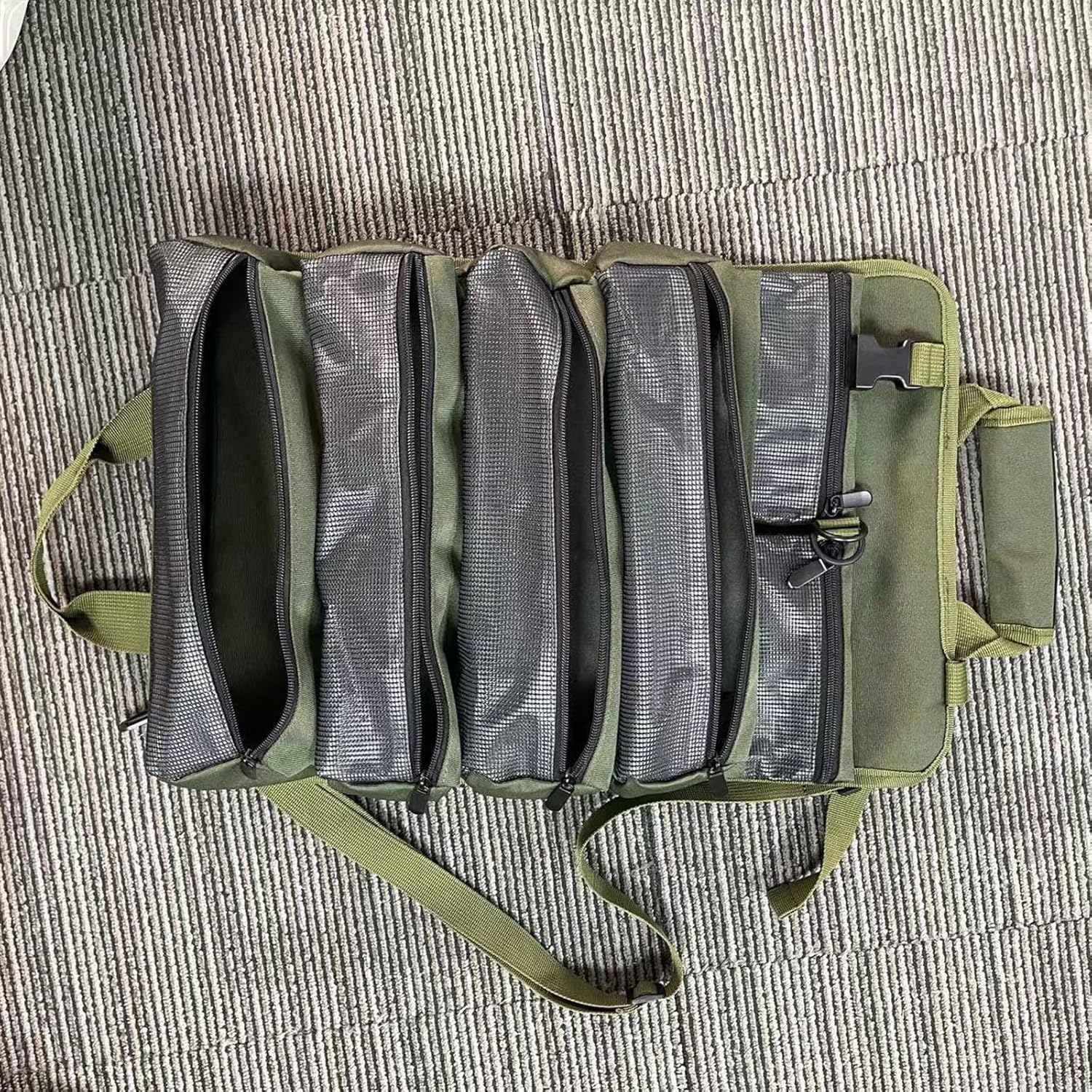 Compact Electrician Tool Pouches Rollable Design Water Tool Bag Multiple Compartments For Hardware Car RepairsFeatures:Durability Oxford fabric construction with multiple organized pockets keeps tools secure and accessible, perfect for electricians and contractors needing reliability tool storage Adjustable shoulder belt and reinforced stitching heavy wrenches, drills, and hardware while maintaining portability as a compact tool bag roll.Designed for professionals and DIYers who require quick access to screwdrivers, pliers, and measuring tapes during home renovations or outdoor projects transitions from garage workshops to rooftop repairs with its lightweight design and weather hardware storage compartments.Roll top closure with double layer reinforcement protects sharply edges and delicate instruments during camping trips or automotive maintenance tasks.Specifications:Component: 900D Oxford ClothExpanded size:Approx.50x32.5cm/19.69x12.8inchFolded size:Approx.32.5x17cm/12.8x6.69inchColor: GreenApplicable scenario: auto repair shop, outdoor repair;Package Includes:1pc Tool BagNote:Please allow 1-10mm errors due to manual measurement. Due to the differences between different monitors, the picture may not reflect the actual item color.
