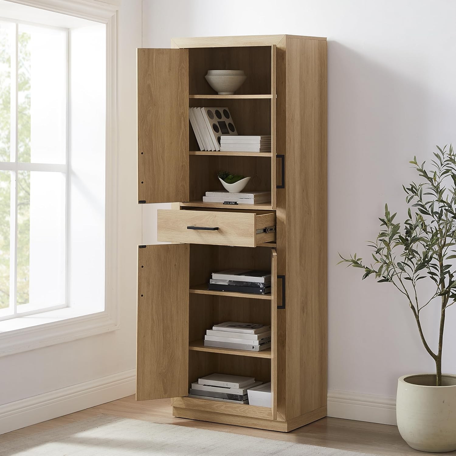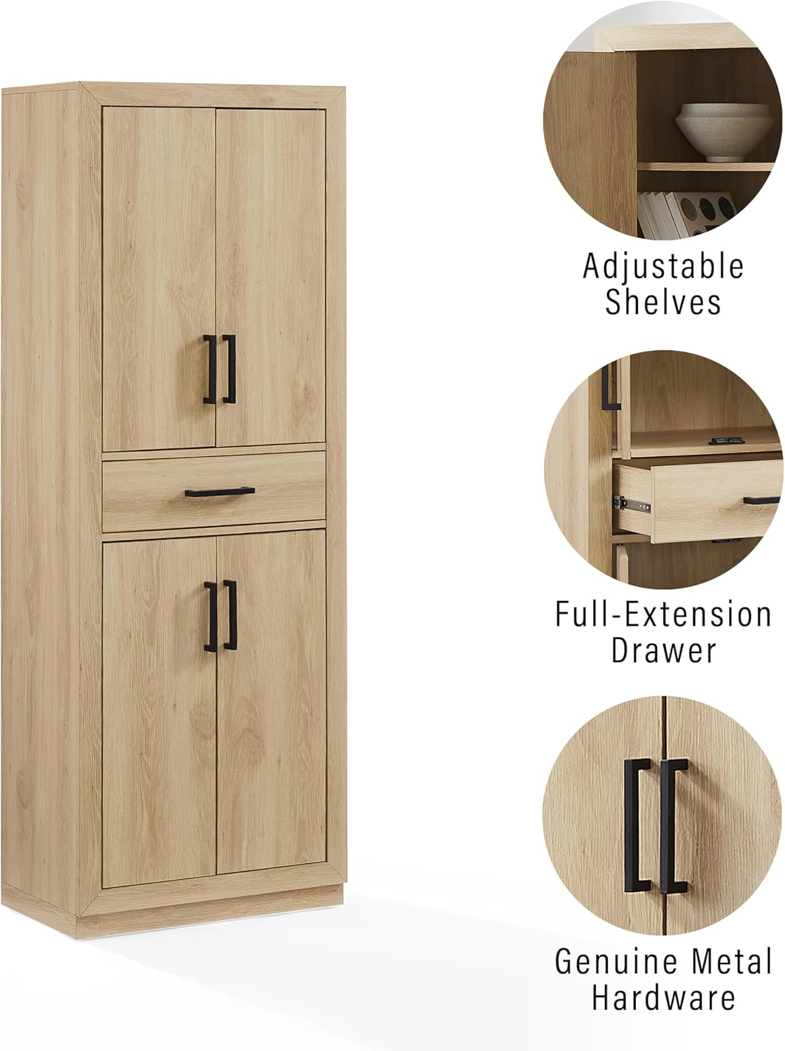 The Isla Pantry adds generous storage to any room in your home. Tuck away everything from dishes to linens in the large upper and lower kitchen cabinets. Organize your smaller items in the full-extension drawer. With a simple modular design, this pantry pairs seamlessly with other items in the collection, maximizing home organization.