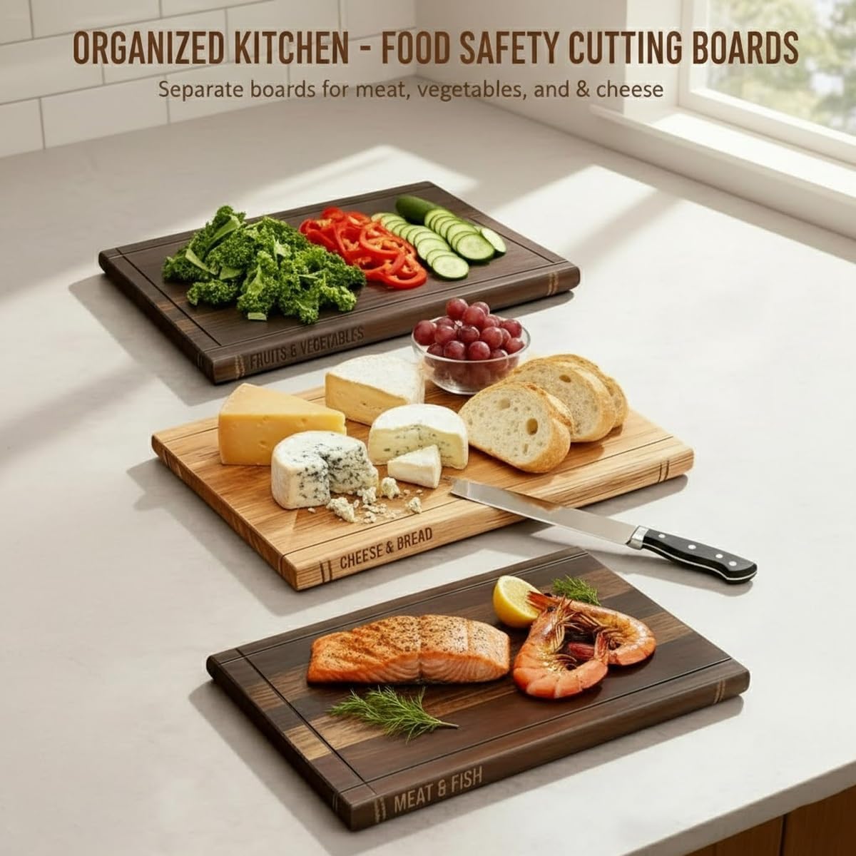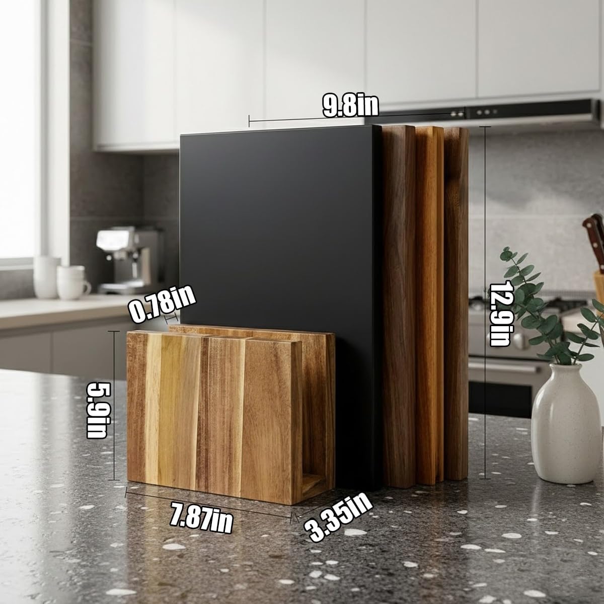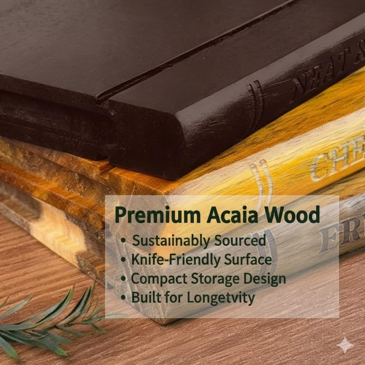 This book-style wooden cutting board set combines creative design with everyday kitchen functionality. Shaped to look like classic books, the boards stand upright like a mini library, adding decorative charm while saving counter space. Each board is clearly labeled for fruits, vegetables, meat, fish, cheese, and bread to help prevent cross-contamination and keep food prep organized♣♣♣ Color: Solid Color Shape: Rectangular, Book-shapedMaterial: WoodProduct Dimensions: 13" L x 9.8" W x 0.8" D (Each Board)Product Weight: 7.72 lbs (Total Set)♣♣♣ Key Features: Built-in Sink/Juice Groove, Reversible, Portable, Knife-Friendly♣♣♣ Recommended Uses: Vegetables, Fruits, Bread, Raw Meat/Poultry/Fish, Cooked Foods, Cheeses, Serving♣♣♣ Package Contents: 3 x Book-shaped Cutting Boards, 1 x Wooden Display Stand