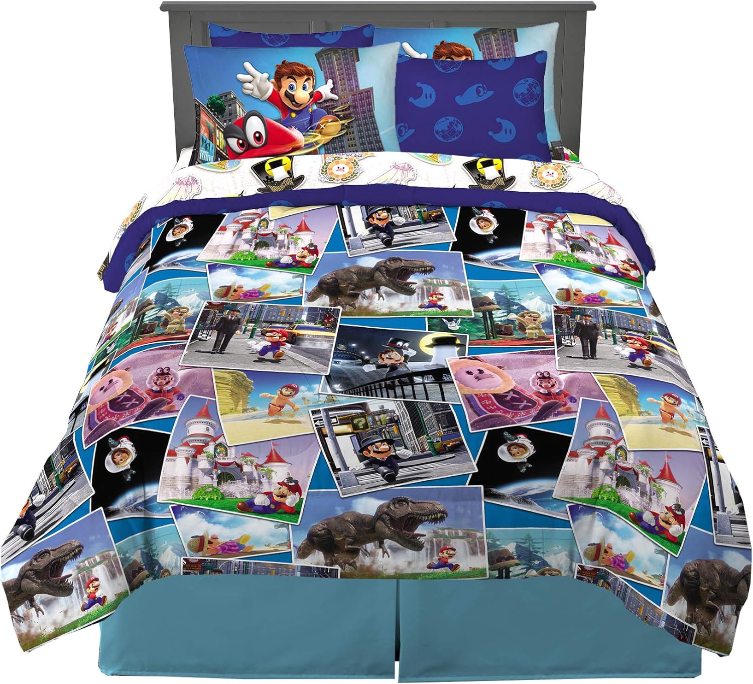 SpongeBob SquarePants brings his boisterous energy to bedtime with this cool and colorful bedding set. Featuring SpongeBob, Squidward, Gary, Patrick, and Sandy from the popular Nickelodeon animated series, this bedding bundle is an epic addition to any SpongeBob fan’s bedroom.The high-quality microfiber set includes a comforter, fitted sheet, flat sheet, pillowcase(s), and pillow sham(s). For fun and versatility, one side of the reversible comforter features SpongeBob, Patrick and Gary against a dark blue deep-sea backdrop, while the flipside features an animated all-over SpongeBob pattern and a lighter blue backdrop. Coordinating colors and imagery on the SpongeBob themed sheets, pillowcase(s) and pillow sham(s) help create a cohesive look.Nickelodeon’s long-running SpongeBob SquarePants program continues to win new fans with its zany underwater antics. Now kids can join the fun on dry land with this high-quality bedding set featuring their favorite Bikini Bottom characters.Set is available in a twin size 5 piece bedding set or a full size 7 piece bedding set.