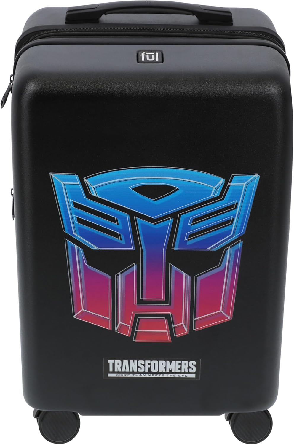 Keep your belongings conveniently and efficiently stored in one place while breezing through the airport or hotel lobby and give the perfect gift to the Transformers fan in your life with this stylish Transformers rolling luggage on wheels. Constructed with a stylish, eye-catching image of the Autobots logo, this hard shell carry on luggage features 8 360 degree multi-directional spinner wheels which allow for smooth travel over all types of textured surfaces, and the lightweight hard sided luggage with spinner wheels features a retractable pull handle so you can reach your destination without hassle. The 8 wheel hard case luggage for men and women features a sizable polyester-lined main zip compartment divided for easy packing of your belongings, and clothing compression straps to keep clothing from wrinkling. The light weight carry on luggage roller features a hard shell polycarbonate and ABS plastic case which protects your hardcase luggage and is easy to spot clean to keep the carry on luggage with wheels looking stylish during travel. The small travelling bag with wheels measures 22.5 H x 14 W x 9.5 D in inches, and weigh 6 lbs, fitting within airline approved carryon luggage size guidelines. Hard side luggage is backed by a 5 year warranty.