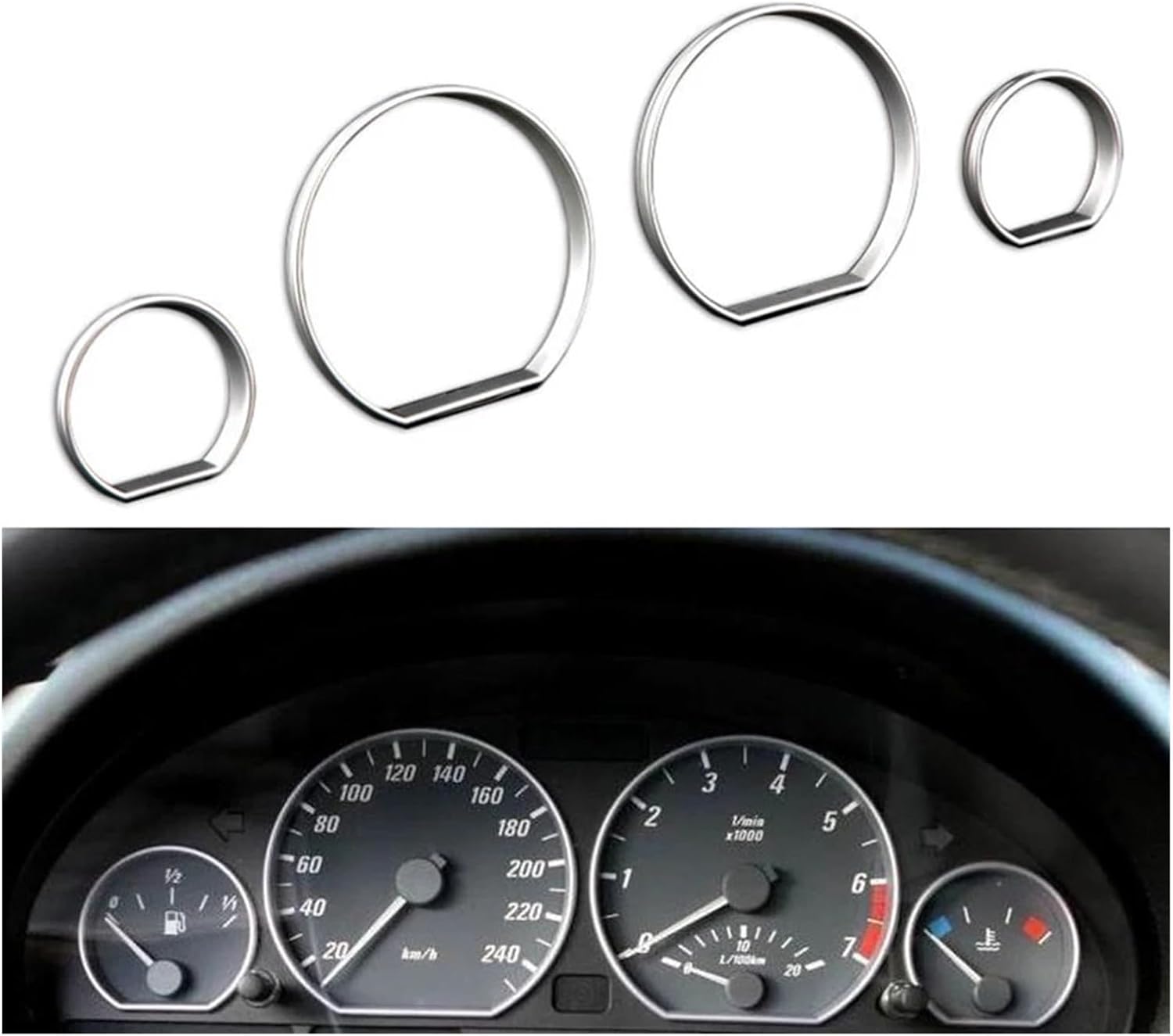 Safety:Motorcycle Meter Cover Frame Protect your motorcycle gauge from dirt, moisture, dust and other outer damages, extending service life and reducing maintenance costs.Features:Made- of durable ABS chromed plastic chromeSpecifications:Material: ABSColor: SilverFitment: Fit For BM&W E46Quantity: 1 setPackage Size: 16*11*4.5cm / 6.3*4.33*1.77inPackage List:4 * Dashboard Decoration FrameMotorcycle Screen Instrument Guard Please confirm this product is suitable for your motorcycle before purchase.