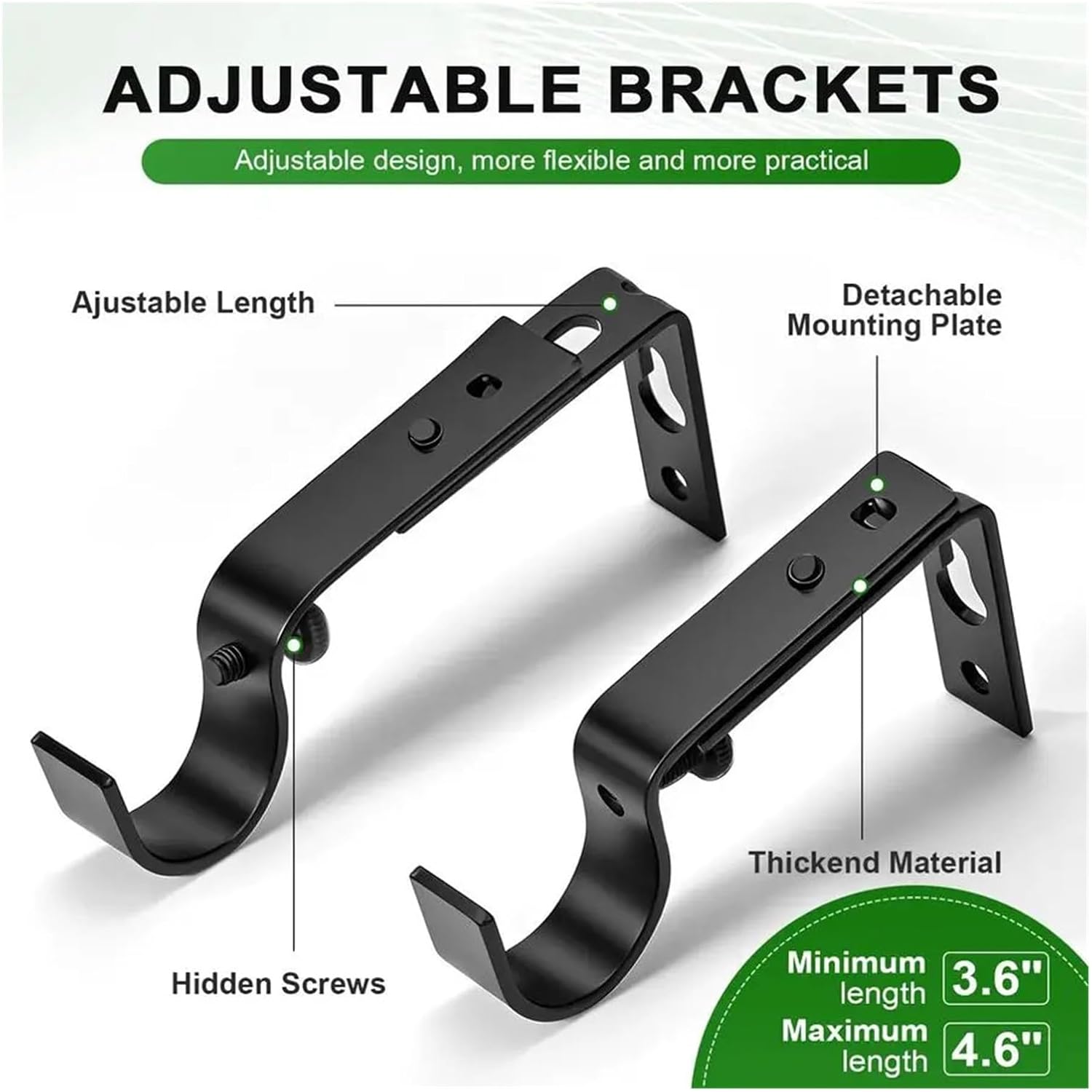 1. The curtain rod is made of sturdy materials and can meet most of your curtain or door curtain needs.2. It features a telescopic rod design, allowing for better flexibility to accommodate windows of different lengths.3. Easy installation will bring you a better user experience.Description:The heavy-duty curtain rod features a 9-interconnecting rod design and is the ideal solution for curtain rods for windows 66-120 inches, providing reliable support for large windows without sagging.The black curtain rod is made from reinforced metal with a wall thickness of 0.7 mm and an outer diameter of 1 inch, ensuring long-lasting durability.Quick connect installation, no tools required, just align the rods and turn the pesky screw or nut half a turn clockwise, installation is complete when the sections are flush and locked securely.Precision engineering ensures each adjustable curtain rod section locks together seamlessly. Once installed, this long curtain rod stays perfectly straight and won't bend or sag in the middle, even at 10 feet of curtain rod length, maintaining a sleek, professional look.Packing list:1* curtain rod