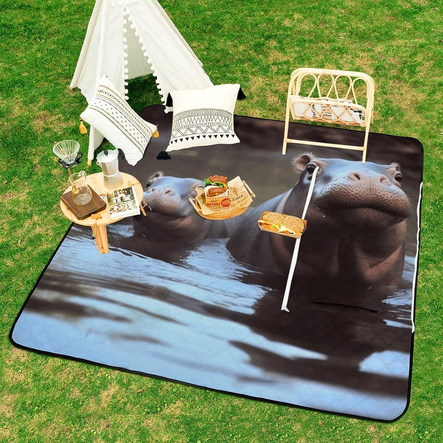 The picnic blanket ,we've only used the highest quality materials, so every picnic is an experience .The underside lining is very sturdy and therefore suitable for every surface. No more worrying about dirty or wet bottoms when you are sitting on damp grass. The Hippos blanket protects you from water, dust and dirt.A large capacity bag and a picnic blanket, 2in1. It has a large capacity and one bag can hold everything you need for going out. You choose the place you want to lie down, and this bag can be turned into a comfortable picnic blanket in seconds also it can fold into tote bag, which is waterproof, sand-proof and wear-resistant.Therefor,you can take it to nearby parks, campuses, beaches or lawn, anywhere you want to lie down.