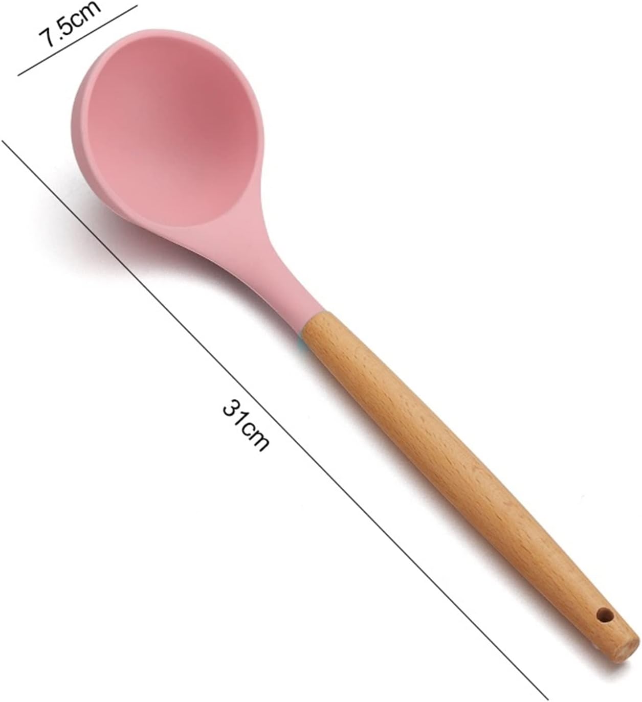 Healthy materials, the best kitchen accessories in the restaurant and at home. The perfect kitchen tool for cooking and stirring soup.Item Name: Soup Ladle Material: food grade silicone head and wood handleUsage: serving spoonPlease note :1. Before purchasing, please check the size and color.2. The product photos do not include items other than the product .3. Please note that due to different monitors, there may be slight color difference, please understand.4. Due to manual measurement error, please refer to the actual product, thank you.5. If you find any problems with our products, please feel free to contact us via email, we will solve this problem as soon as possible.6. Welcome your sharing and feedback, so that we can provide you with better products and services.