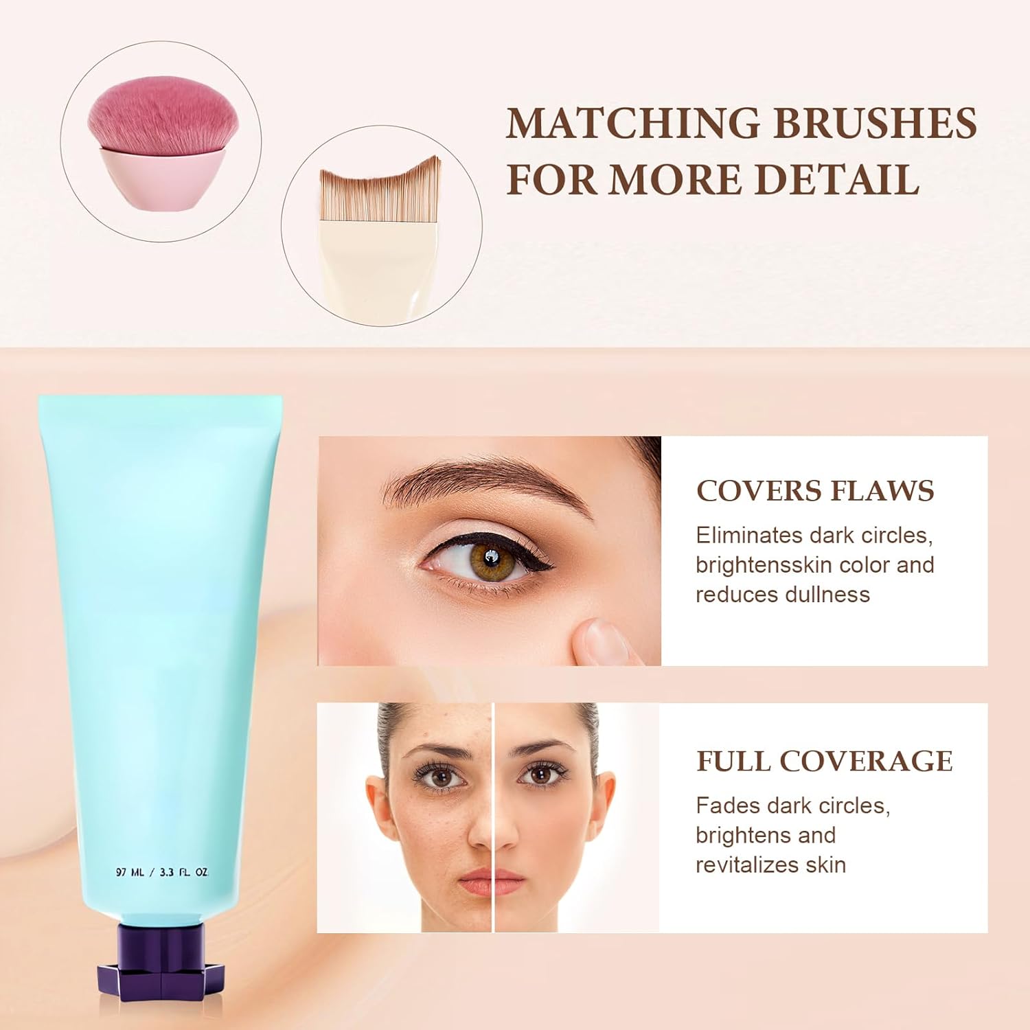 Liquid Foundations with Face Foundation Brush & Body Foundation Brush for Mature Skin, Concealer Coverage Cream for Makeup, Long Lasting, Lightweight, WaterproofPackage includes:Liquid Foundations with Face Foundation Brush & Body Foundation Brush