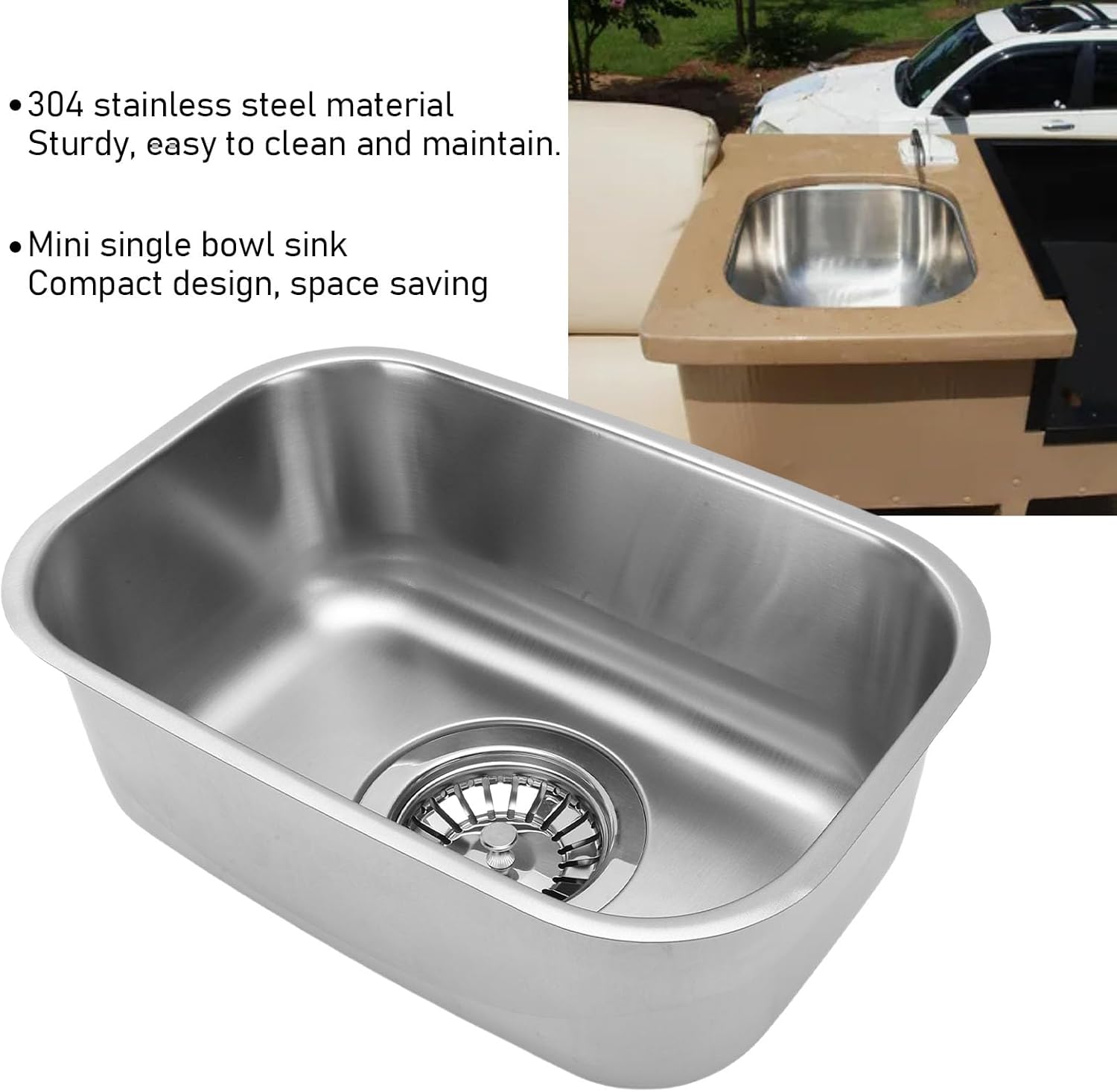Specification: Item Type: Mini Stainless Steel Sink Installation Location: Vehicles, Boats, RVs Material: 304 Stainless Steel Surface Finish: Brushed Sink Size: Approx. 320x220x120mm / 12.6x8.66x4.72in Applicable Types: Cars, Boats, RVs, Yachts Product Features: Thickened 304 food grade stainless steel, durable and sturdy, mini single bowl design for easy installation, includes direct drain accessories to prevent leaks, no need for additional purchases Package List: 1 x Sink 1 x Right Angle Drain 1 x Corrugated Pipe 1 x Corrugated Pipe Sealing Ring 1 x Connector 1 x Filter Screen
