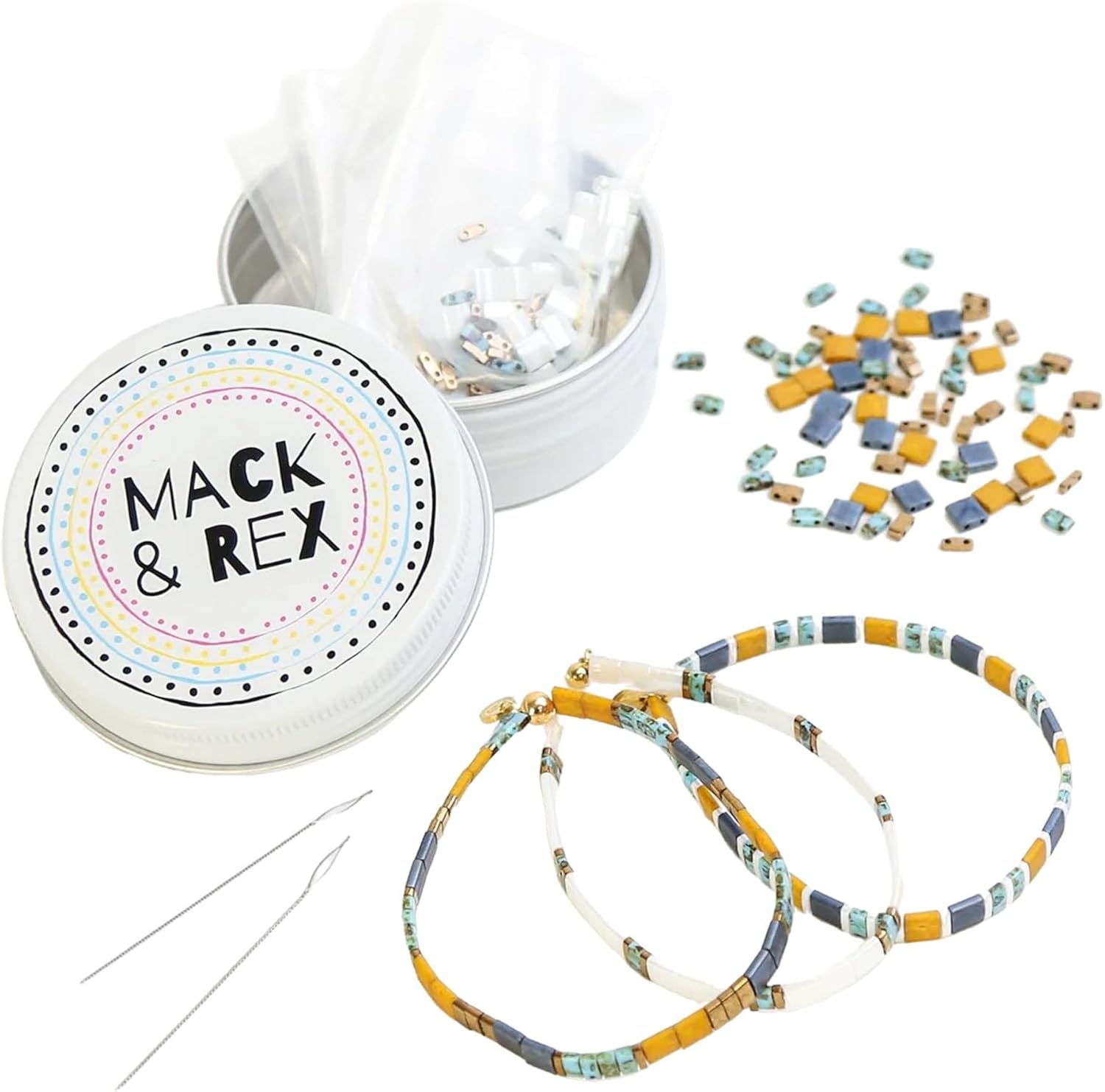 Create stunning bracelets with the TRIO BRACELET KITS - Carolina Beaches from Mack and Rex! This complete kit includes everything you need to make three beautiful bracelets: premium tila beads, two needles, pre-cut crystal elastic, crimp beads, knot covers, extra beads, and supplies, all packed in a stylish tin. Designed for both beginners and experienced crafters, this kit is easy to use—if you can tie a knot, you can make these bracelets! Access our comprehensive online tutorial with clear pictures and video clips for step-by-step guidance. Ideal as a gift for birthdays, holidays, or any special occasion, this kit is a hit with anyone who loves crafting and jewelry-making. Create stylish, professional-looking jewelry with confidence using our premium materials.