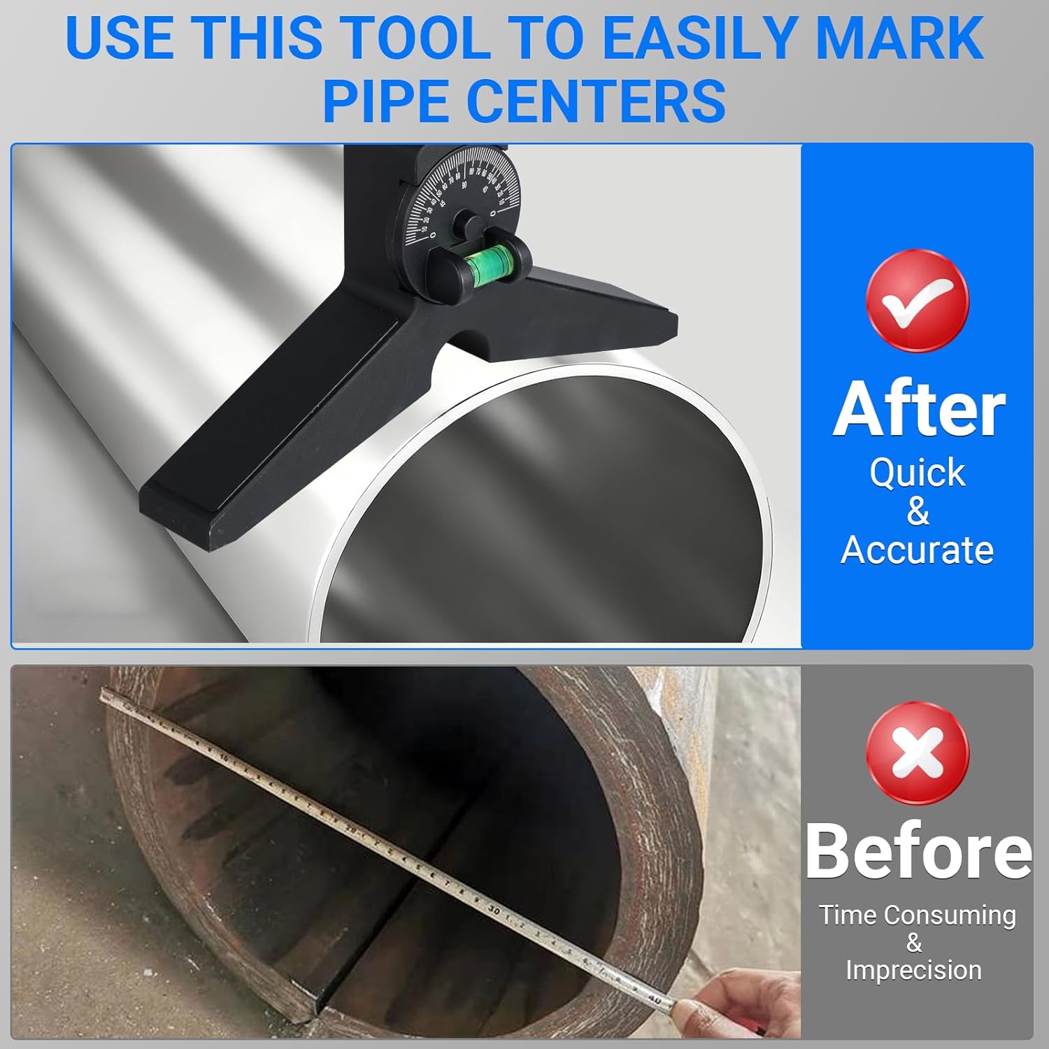 Introducing the Magnetic Centering Head, Pipe Center Finder, and Pipefitter Tools - a versatile Y-shaped tool with an adjustable dial bubble protractor. This handy device is designed to assist in accurately centering pipes and other cylindrical objects for welding, cutting, or fitting applications. Its magnetic base firmly attaches to ferrous surfaces, ensuring stability and precision during your work. The adjustable dial bubble protractor allows for precise angle measurements, making it an indispensable tool for pipefitters, plumbers, and fabricators. Constructed from durable materials, this tool is built to withstand the rigors of demanding job sites. With its compact size and lightweight design, it's easy to carry and maneuver in tight spaces. Streamline your workflow and achieve professional-grade results with the Magnetic Centering Head, Pipe Center Finder, and Pipefitter Tools.