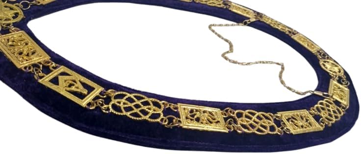 Product Description: The Masonic Regalia Grand Lodge Chain Collar is a prestigious accessory designed for Grand Lodge officers and members. This collar features a stunning golden chain paired with a luxurious purple velvet backing, symbolizing authority, wisdom, and high rank within the Masonic tradition. The chain collar is ideal for formal Masonic events, ceremonies, and lodge meetings. Golden Metal Chain: Crafted from high-quality golden metal, the chain collar radiates elegance and is designed to retain its lustrous shine over time. The sturdy construction ensures longevity and durability, suitable for repeated ceremonial use. Rich Purple Velvet Backing: The collar is supported by a soft, purple velvet backing, offering comfort during wear. The purple color signifies wisdom and royalty, making it perfect for high-ranking officers in the Grand Lodge. Symbolic and Elegant Design: The combination of the golden chain and purple velvet is steeped in Masonic symbolism, representing the balance of spiritual and worldly responsibilities of a Grand Lodge officer. Comfortable and Adjustable Fit: Designed to fit comfortably around the neck and shoulders, the collar is adjustable to accommodate most sizes, ensuring that it sits securely during formal events and ceremonies.