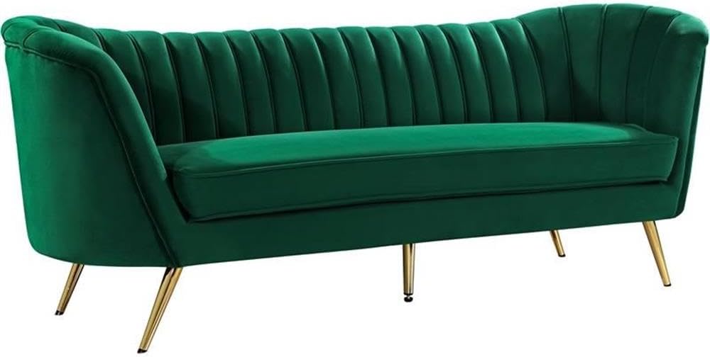 Lean Back and lounge in luxurious style on this stunning Margo Black velvet Sofa by Meridian Furniture. This contemporary sofa features plush velvet upholstery that is both classy and sumptuous against your skin, A single seat cushion and rounded arms that curve into a low, rounded back, Creating A perfect, modern piece for your home. Gold stainless steel legs support this sofa and provide stunning contrast to the sofa's plush, Black fabric.