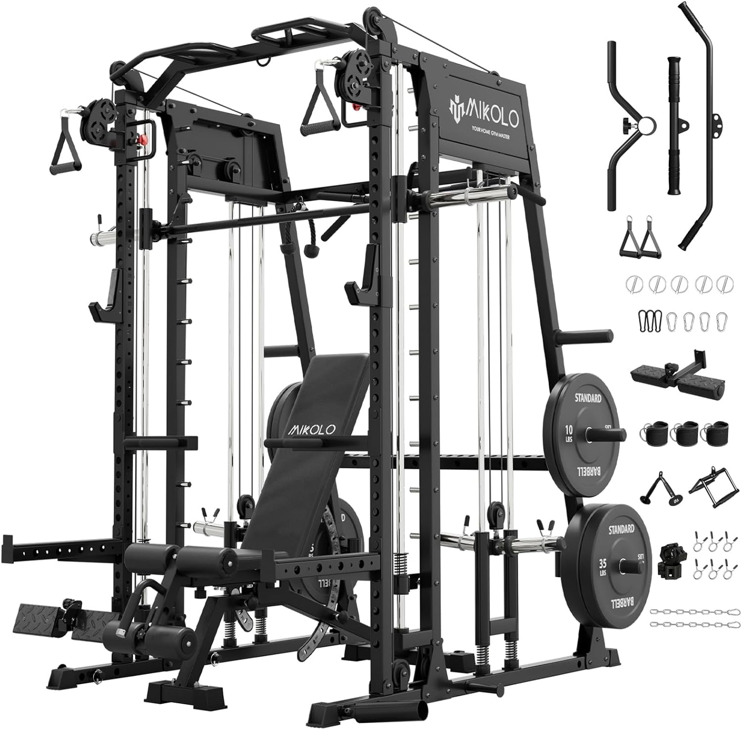 Mikolo M4 2.0 Smith Machine, 2200lbs Squat Rack with LAT-Pull Down System & Cable Crossover Machine, Training Equipment with Leg Hold-Down Attachment