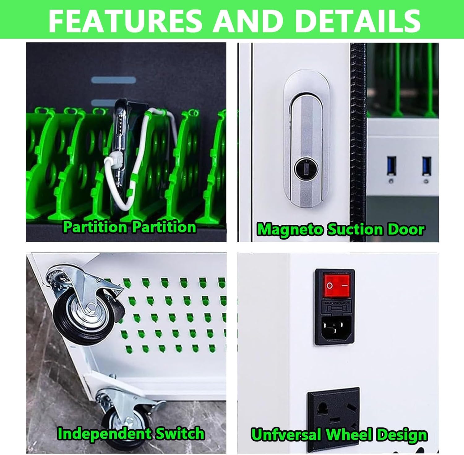Phone Safe School Storage Box:The charging cabinet is easy to move and is an choice for classrooms, universities, libraries, cafes, restaurants. Adopting ventilation design that is conducive to heat dissipation of the cabinet, it provides fast charging and safe storage for mobile phones Features: The mobile phone charging and storage cart can not only store mobile phones, but also has a variety of specifications (30, 40, 50, 60 positions), which can charge multiple mobile phones at the same time. The mobile phone storage box is used to organize and store mobile phones and create a good space environment. The mobile phone USB charging station is suitable for classrooms, meeting rooms and other various environments, suitable for students who focus on learning and hope that their colleagues can continue to work. Specifications Material: Metal (thickened cold-rolled steel plate) treatment: electrostatic powder coating Color: Silver Style: Modern Shape: Rectangular Single-port current (A): 5v2A -Size: The size of 30 mobile phone storage slots is: 46*27*61CM; The size of 40 mobile phone storage slots is: 58*27*61CM; The size of 50 mobile phone storage slots is: 58*27*79CM The size of 60 mobile phone storage slots is: 79*27*58CM Package: 1*Portable mobile phone charging cabinet - If you have any questions, please write to us and we will be happy to help you.