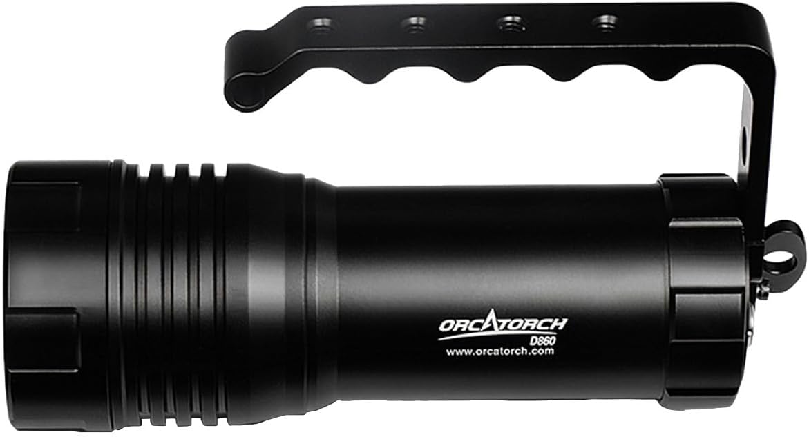 Dive Deeper with the OrcaTorch D860: A Pinnacle of Underwater IlluminationLess ThanbRGreater ThanDiving enthusiasts, meet the OrcaTorch D860, the ultimate accessory for your underwater adventures. Gone are the days of mediocre, dimly-lit underwater excursions. The OrcaTorch D860 is here to revolutionize your diving experience with its unparalleled luminosity and robust features.Less ThanbRGreater ThanBoasting a powerful trio of 3x CREE high-power LEDs, this dive light illuminates the depths with a staggering 4200 lumens. Yes, you read that right. This isn't just a flashlight; it's a beacon, guiding you through the aquatic world. And with its intelligently-designed direct charging system, you get a quick charging time of just 3.5 hours. No need to fuss with taking out the battery pack - simply plug and play.Less ThanbRGreater ThanBut that's not all. This torch is powered by a replaceable INR battery pack with an impressive 7.4V 50.3Wh. Designed for user convenience, it also boasts a titanium alloy tail button switch for smooth operation, and a safe lock function, ensuring you never accidentally turn it on or off.Less ThanbRGreater ThanA testament to its ergonomic design is its specially crafted handle, making it not only comfortable to hold but also effortless to assemble. Always know your battery status with its efficient battery indicator and LED charging indicators, ensuring you're never caught off guard.Less ThanbRGreater ThanSafety while diving is paramount, and the Orca