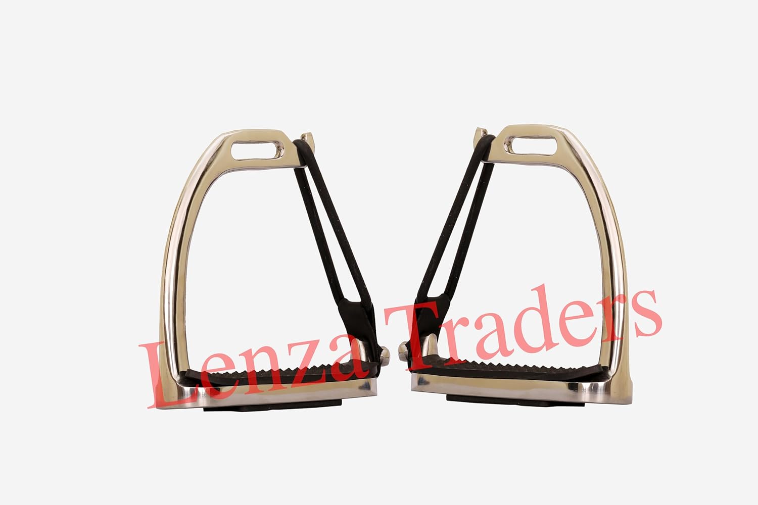 Read Description: PEACOCK SILVER POLISH SAFETY STIRRUPS HORSE RIDING S/ STEEL WITH BLACK TREADS High Quality Stirrups With Strong Grip Tread FEATURES: SOLD AS PAIR PROVIDES OPTIMUM COMFORT FOR THE LEG POSITION. SAFE, SECURE, DURABLE AND NON-RUSTY. HIGH QUALITY STAINLESS STEEL. GOOD QUALITY MADE OF STEEL NOT IRON AND MORE DURABLE. SMOOTH AND EASY TO HOP ON TREAD WITH STRONG GRIP.