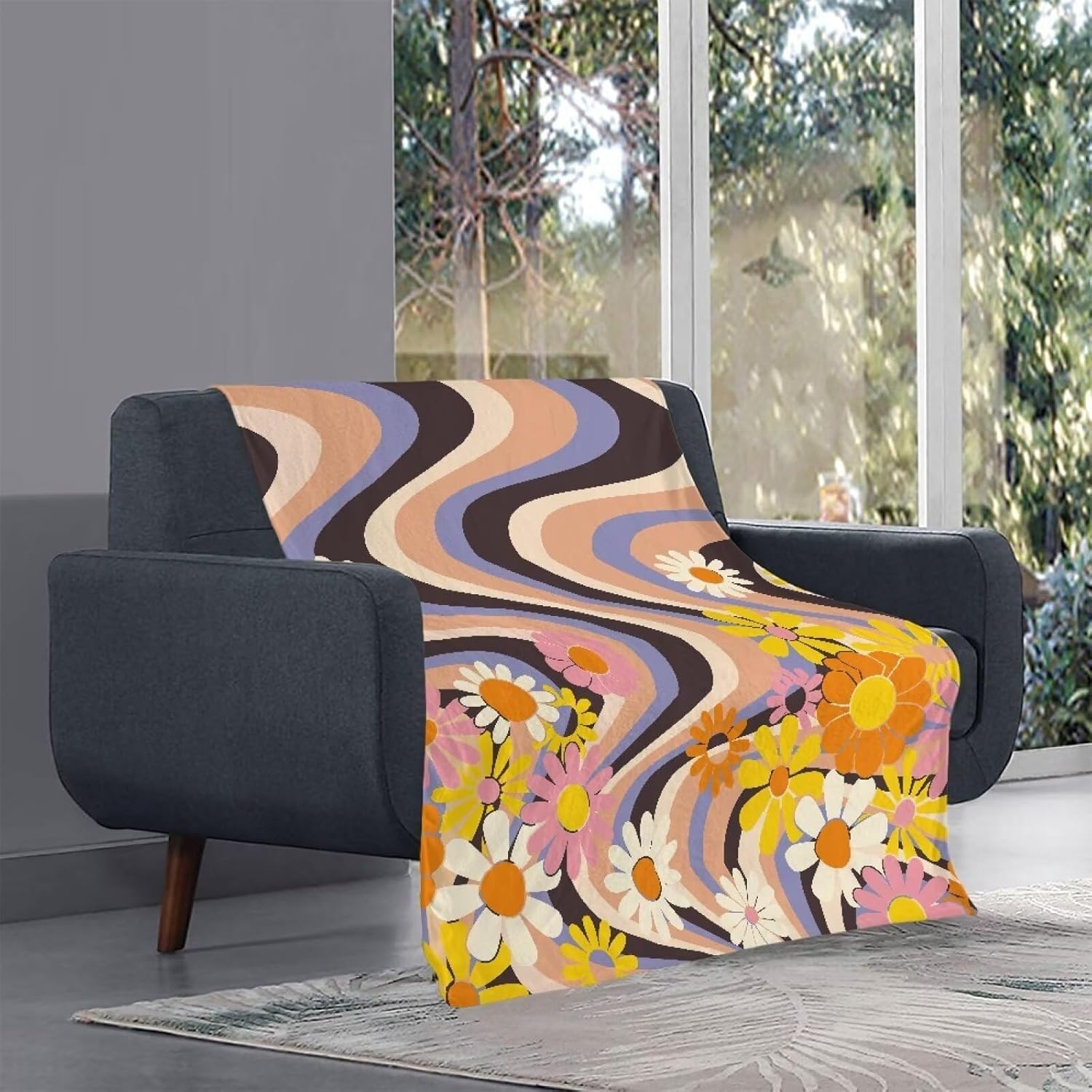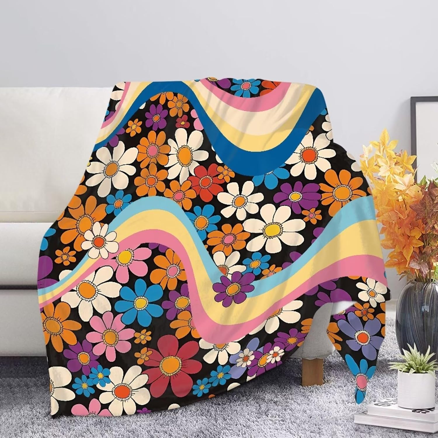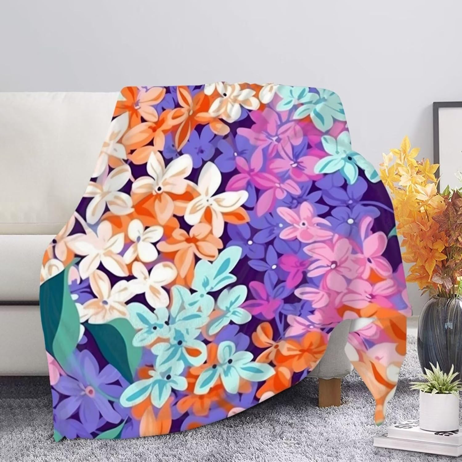 Add a touch of personality to any living space with this soft printed throw blanket. Made from comfy polyester, it provides luxurious warmth and insulating coziness without excessive weight. The fuzzy, pill-resistant fabric features vivid prints ranging from bold animal motifs to eye-catching floral and aesthetic designs.Available in generously-sized options from 44.9x59.8" up to 59.1x78.7" to fully cover beds, couches and lounging areas. This versatile throw strikes the perfect balance of fashion and function - stylishly curl up on cool nights, bring a decorative accent to drab decor, or take it along for camping and travel.Durable enough for daily snuggling, this winter fall throw blanket makes a great addition to your home, dorm room, or outdoor living areas. Get cozy with vibrant style!