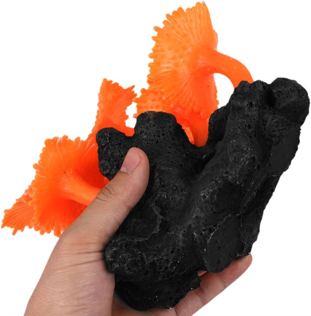 Silicone Aquarium Emulational Water Coral Ornament 6 Inch High OrangeCeramic base holds gravel to firmly keep the plant in place in the water with the white dot in the end of the coral.Great for your fish tank or aquarium, can provide a lifelike room for fishes and other sea creatures.