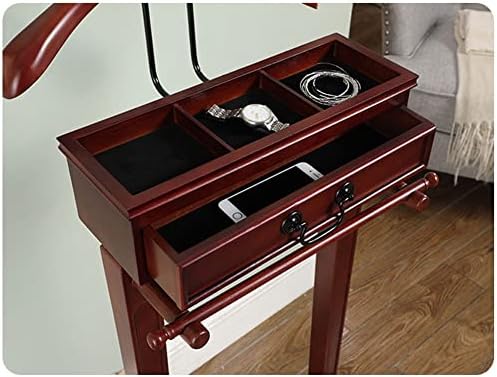 Why choose our Executive Clothes Valet Suit Rack Stand This thoughtfully designed valet stand is more than just a functional piece; it's an essential addition to your daily routine. Our wooden Executive Clothes Coat Valet Stand offers a dedicated space for your suits, ties, wallet, keys, and phone, ensuring that your essentials are nized and easily accessible each morning. No more frantic searches for items before heading out—everything you need is neatly arranged and ready to go. Imagine starting your day with confidence, knowing that your attire is perfectly displayed and your belongings are in one place. This Portable Suit Coat Rack Hanger Stand is not only practical for your bedroom but also enhances the aesthetic of your living room or entrance. Crafted from high-quality materials, this valet stand combines durability with elegance, making it a stylish addition to any home. Its sleek design complements various interiors while providing a touch of sophistin. Whether you're dressing for work, a special event, or simply need a place to hang your clothes, our Executive Clothes Valet Suit Rack Stand meets all your needs. Experience the convenience and nization that comes with having a designated space for your clothing and accessories. Invest in a valet stand that elevates your daily routine and keeps your living space tidy. Make mornings easier and more enjoyable with our Executive Clothes Valet Suit Rack Stand—because a well-nized life starts with the right tools.