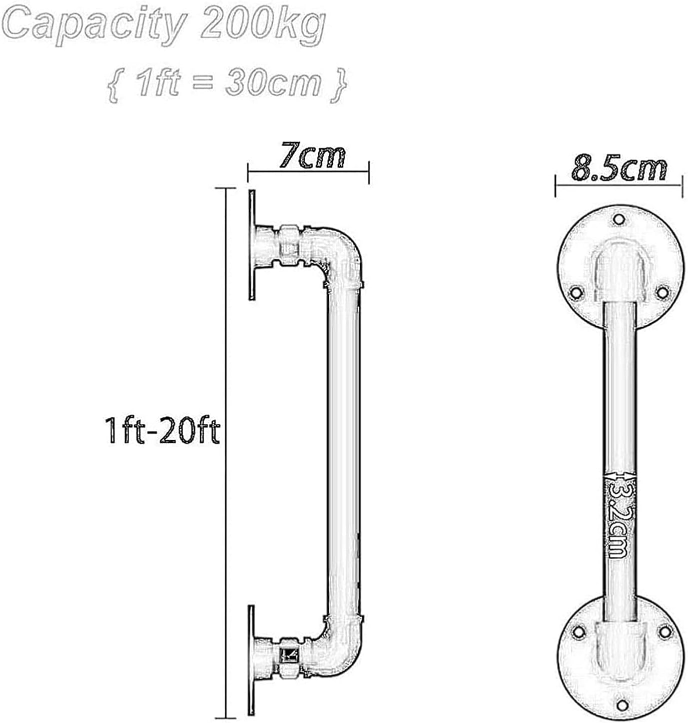 ★Do you find it difficult to walk up the steep, slippery or inconvenient steps in your home or porch stair? Are you on the lookout for a reliable stair railing system for your interior or exterior steps?★The handrails are well supported on the stairs. Grab and up or down, it is an indispensable help for children, elderly and people who have difficulty climbing stairs.★Not only can you place it on the stairs, it can also be placed in high humidity rooms such as kitchen bathroom and garden. ★Wrought Iron Staircase Handrails Detail- Material: wrought iron, galvanized pipe- Colour: White, silver- Distance to the wall : 7cm- Chassis Diameter : 8.5cm- Diameter : Approx. 1.3 \u2033 (3.2cm)- Includes wall bracket and mounting material-Applicable objects: the elderly, children, pregnant women, people with reduced mobility, etc.- Length: 1ft-20ft /30-600cm (Due to the size limitation of the logistics company, this product can only be sent in sections, hope to understand, Products are divided according to length: 1ft-4ft is divided into 1 part, 5ft-20ft is divided into multiple parts, You can also combine multiple kits to create longer lengths, support custom size)▶▶Products include: handrails, screws, flanges and complete mounting accessories.★★★Tips1. When measuring manually, the product size may show a physical error of 2-3 cm.2. Welcome to our shop! If you have any specific product queries, please contact ours, please rest assured, we are a professional manufacturer of Handrail