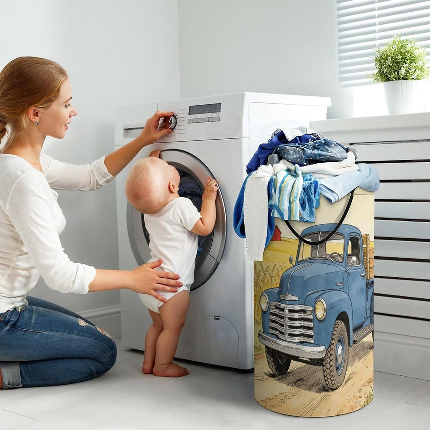 The pattern of the Truck hamper is printed with exquisite patterns, which makes the product more attractive.Chic design allows it to be used in the living room to hold throw blanket, pillows, and reading materials, as well as in the bathroom for towels, or as a laundry hamper.The laundry hamper adopted collapsible design, equipped with handles. It is lightweight and portable for using, storing, and moving conveniently.Truck Clothes hamper is suitable to store dirty clothes washing, place in the room to store toys, and other household goods, keep the house clean and tidy. Perfect laundry hamper for home, office, closet organizer, bedroom, bathroom, college dorm, etc.Gets out of your way when you need it to. This storage basket or laundry hamper is a good gift, which not only meets everyday storage needs but also carries deep care and love, a perfect way to turn thoughtfulness into warmth.