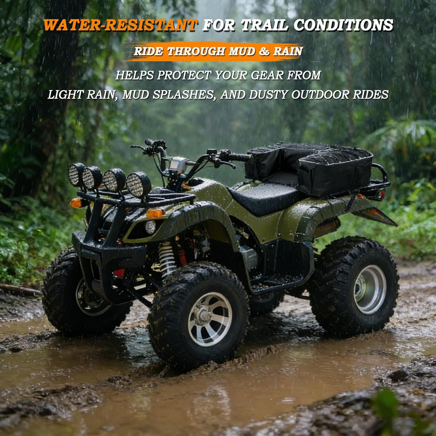 ✅ Designed for Trail Riding, Farm Work & Outdoor Carrying💡 UTVs and four wheelers have open rear racks with no built-in storage, where tools and gear often slide, get dirty, or become hard to reach during rides. This rear rack storage bag turns unused rack space into organized, easy-access UTV and quad cargo storage🔥【Features】● Creates usable UTV, quad and four wheeler rear rack storage for tools and gear● Keeps items from rolling or shifting on bumpy trails and rough terrain● Helps keep gear more contained from dust, mud splashes and rain● Adjustable straps secure the bag firmly to most UTV and quad rear racks● Reflective strips improve visibility in low-light riding conditions● Water-resistant fabric with reinforced stitching and strong zippers📋【Specifications】● Item Name: UTV Rear Rack Storage Bag for TrailMaster Taurus 450 G EFI 4x4 UTV 2019–2026● Placement: UTV, quad, four wheeler rear rack● Mounting: Adjustable strap system● Material: Heavy-duty water-resistant fabric● Design: Reflective strips, zipper closure, reinforced seams🌄【Use Scenarios】Ideal for trail riding, farm work, hunting trips, property tasks and outdoor gear carrying. Works as an UTV cargo bag, quad rack organizer, four wheeler tool holder and rear storage solution📦【Package Includes】1 × UTV Rear Rack Storage Bag⚠️【Notes】● Check rear rack size before purchasing● Designed for flat rear rack surfaces● Tighten straps before riding🤝【Customer Support】Support team available for sizing questions and installation guidance.