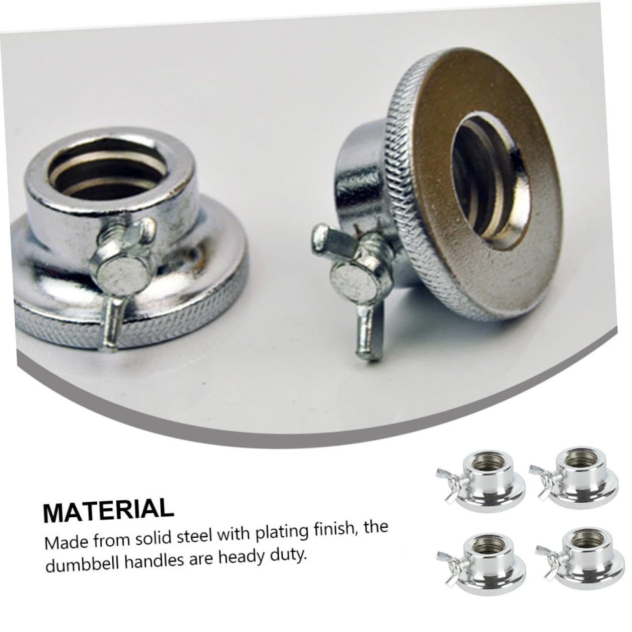 Package List 4 x barbell lock collars Features - Color: Silver Dumbbell Nut. - Size: 5.00 x 5.00 x 3.00cm/ 1.97 x 1.97 x 1.18 inch Security Nut. - Material: iron Barbell Lock Collar. - These dumbbell nuts are easy to carry, suitable for taking them to the gym or for fitness at home Barbell Lock Collars. - Barbell clamps can keep weight plates placed securely and safely while lifting Screw Cap. - for workouts,standard lifts,overhead press,deadlifts,bench press,or any other workout Buckle for Barbell. - Anti-slips silence gasket to reduce noise from disc hitting the pole. Easily can slide on and off the barbell. - Professional and practical design with beautiful appearance, easy to rotate and less wear after repeated use.Goods DescriptionDumbbell Nut Using weight collars is an easy and your plates around as well as providing you with and stability.Barbell Lock Collar You can use dumbbell screw at home or put Screw in your bag to take them to gym for playing with friends, especially convenient for you