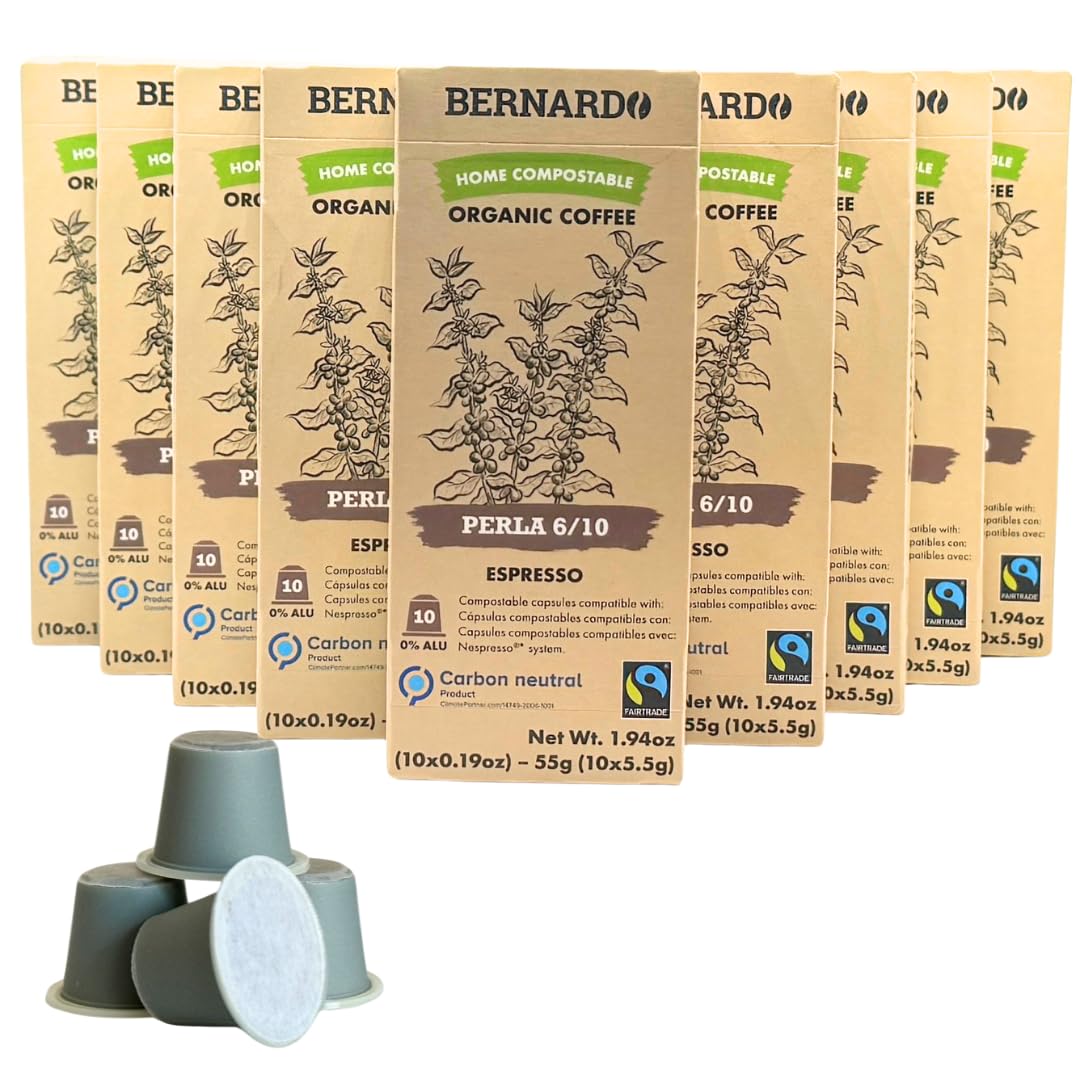 Bernardo DOLCE Espresso Biodegradable Capsules Compatible with Nespresso Original Line, Intensity 8/10, USDA Organic, Home Compostable Capsules. 100 Count (10 Boxes of 10 Espresso Pods)