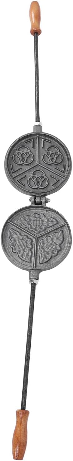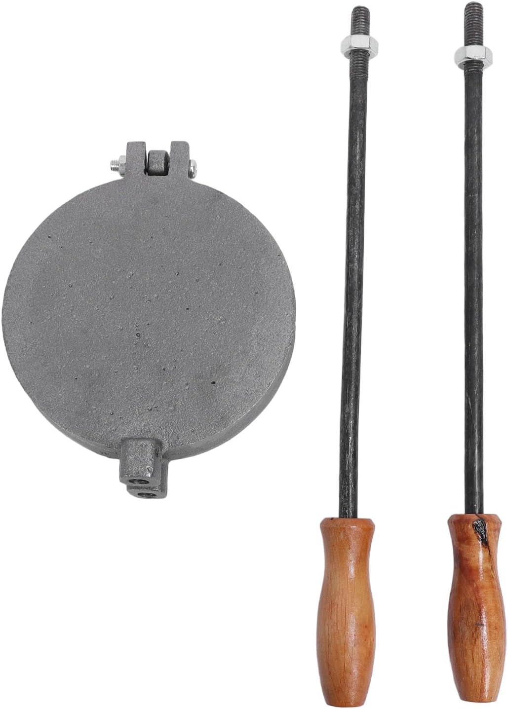 Specification: Item Type: Pancake Maker Pan Material: Cast Iron, Solid Wood Weight: Approx. 1800.00g/63.49oz Pan Diameter: Approx. 14cm/5.51in Pan Thickness: Approx. 2cm/0.79in Handle Length: Approx. 35cm/13.78in Total Length: Approx. 52cm/20.47in PackageList: 1 x Pancake Maker Pan 2 x Handles