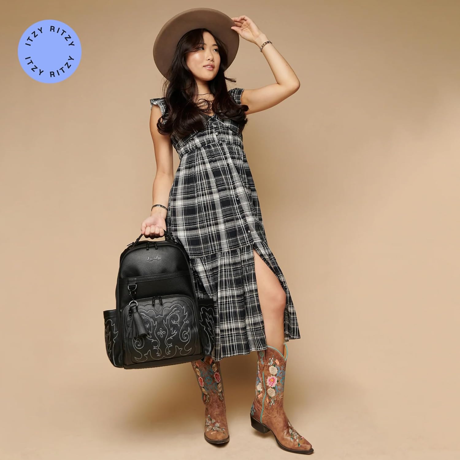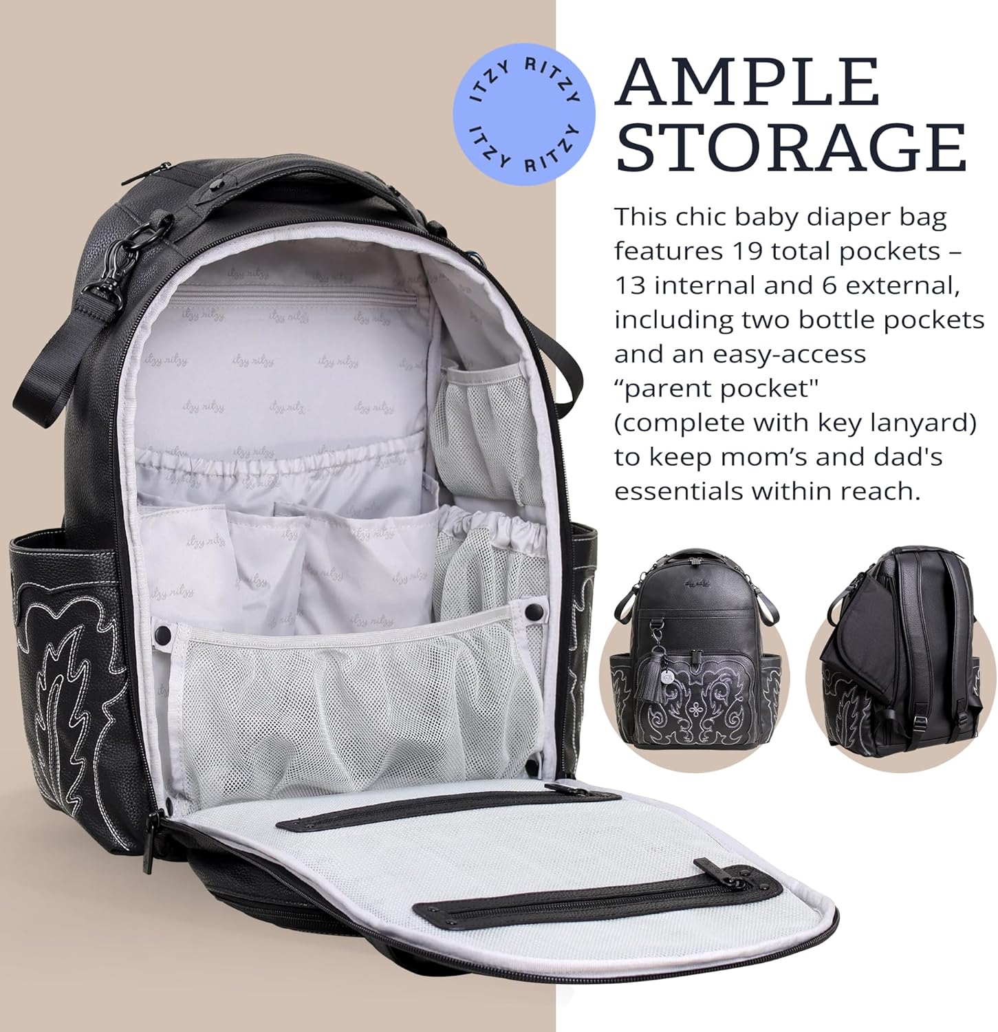 Meet Itzy Ritzy’s Boss Plus diaper bag backpack - your forever bag for baby & beyond, every (little) step along the way! The Boss Plus backpack baby diaper bag is everything you love in our original Boss Backpack with a sleek design and premium features. Elevated with thoughtful organization and style, this baby bag backpack is perfect to take on your new babe’s journey – from all packed up to welcome baby at the hospital to adventurous playdates to an amazing work, pumping or me-time bag for you. Plus, this is the ultimate baby diaper bag backpack with changing pad for those with a passion for travel as an airplane carry-on or a car seat tag-along. It can even hold up to a 15” laptop in the laptop pocket! With even more pockets – 19 total! – this is our most organized large diaper backpack yet and includes must-have features like insulated side bottle pockets, comfy shoulder straps, a roomy main compartment, a felt lined valuables pocket, Itzy Ritzy’s signature rubber bottom feet, and top-to-bottom zippers for total functionality and durability.