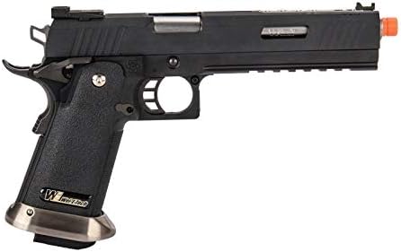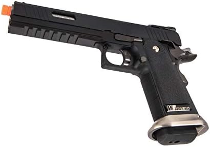 Specifications: ManufacturerWE-Tech OperationGas Blowback Power SourceGreen Gas / Propane Muzzle Velocity300 - 330 FPS Firing ModesSemi-Automatic, Full-Automatic, Safety Hop-UpYes, Adjustable Magazine30 Rounds (Compatible with KJW, WE, Tokyo Marui, and other similar airsoft Hi-Capa series magazines) Dimensions240mm x 150mm ColorBlack / Gold Barrel In the Box 1x Gun 1x Magazine 1x Manual