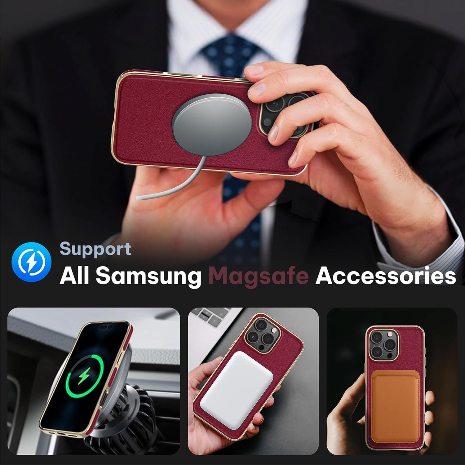 | Additional Features | Business Leather Case, Compatible With MagSafe Wireless Charging, Lightweight Slim Fit, Minimalist Design Elegant Style, Raised Edges, Shock-Absorbent |