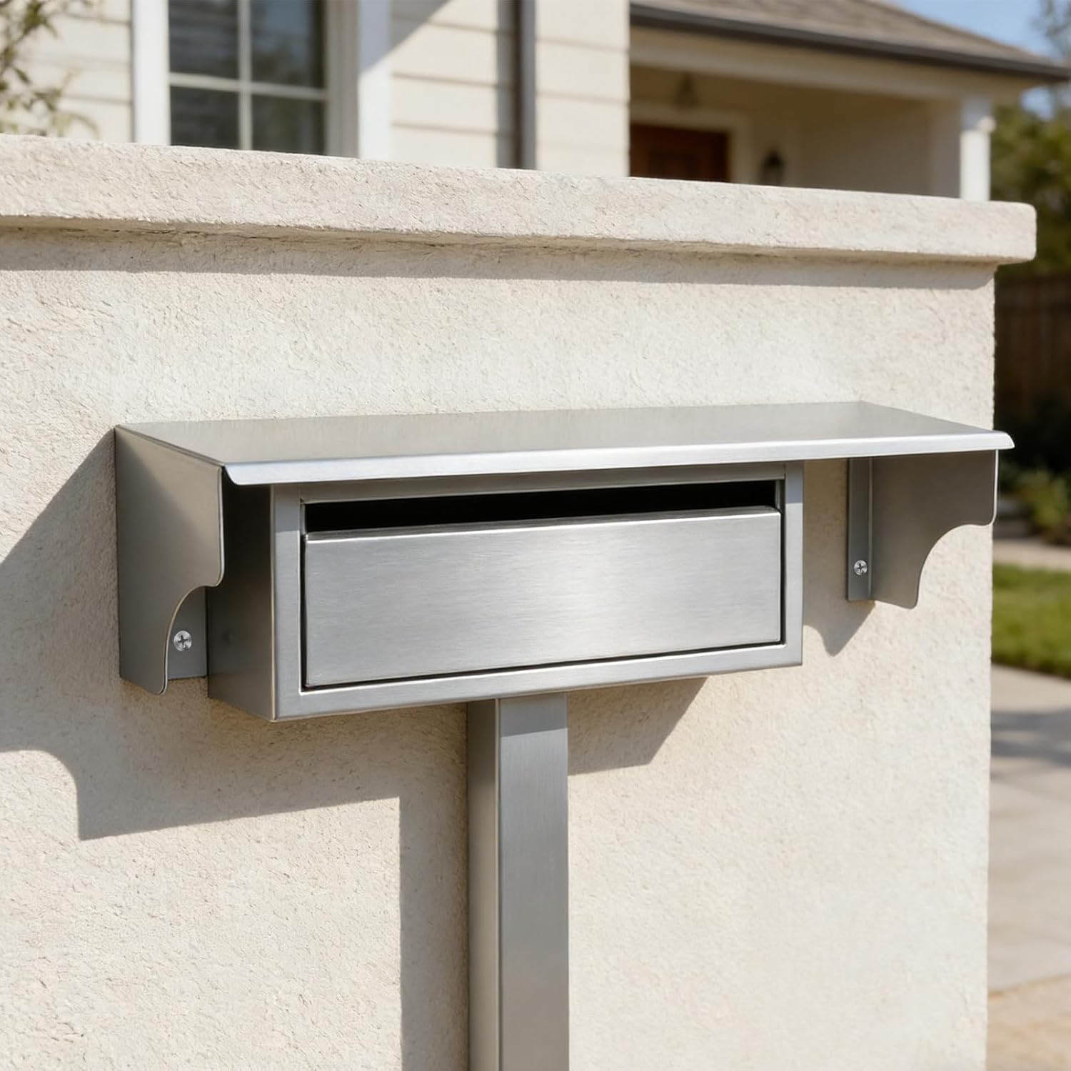 DescriptionThis wall mounted rain cover acts as an effective rain barrier protector, keeping your mail from moisture and ultraviolet rays. The stainless steel mailbox cover offers robust corrosion resistance against outdoor weather, while the mailbox rain shield helps prevent letter discoloration, giving lasting clarity and protection to your correspondence.Features-Color:Silver-Material:Stainless steel-Size:50.50X12.00X12.00cm/19.88X4.72X4.72in-Maximum Dryness Assurance: Our mailbox rain protector uses an innovative rain barrier protector system, allowing your letters are always dry, regardless of severe weather conditions-Effortless Installation: The wall mounted design offers quick setup for outdoor mailbox covers, suited for wall surfaces, streamlining your exterior organization-Premium Steel Protection: Featuring a stainless steel mailbox cover, this product resists corrosion, making it an ideal outdoor mailbox shield for yearround defense-Elegant Visual Upgrade: The mailbox shield plate presents an elegant finish that matches mailbox protective roof standards, making your property more attractive and sophisticated-Sunproof Advantage: Equipped with a rain shelter for mailbox function, this steel weatherboard cover also protects mail from direct sunlight, reducing the risk of fading