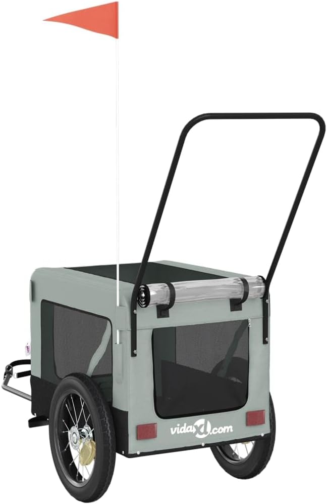 Pet Bike Trailer for Dogs Medium Size Foldable Dog Bicycle Trailer with Safety Flag and Reflectors Durable Oxford Fabric Iron Frame Grey