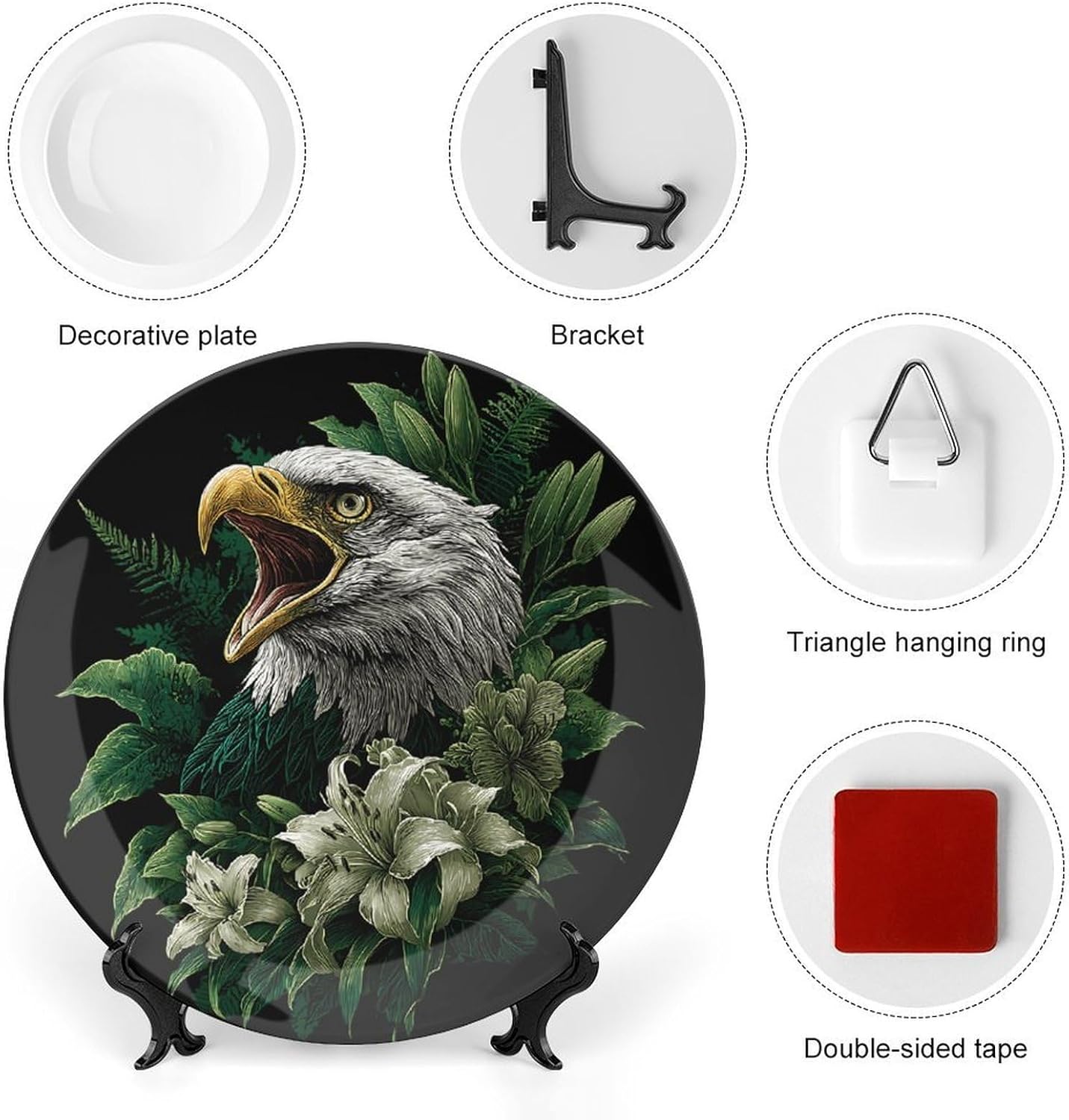 This decorative ceramic plate is the ideal way to add an elegant touch to your home decor. Whether placed on a stand or hung on the wall, its intricate design and vibrant colors make it a standout piece in any room. Crafted from bone china ceramic, this ceramic plate for display features a smooth finish that complements a wide range of interior styles. With both a stand and wall hanger included, this versatile plate is suitable for showcasing your personal style