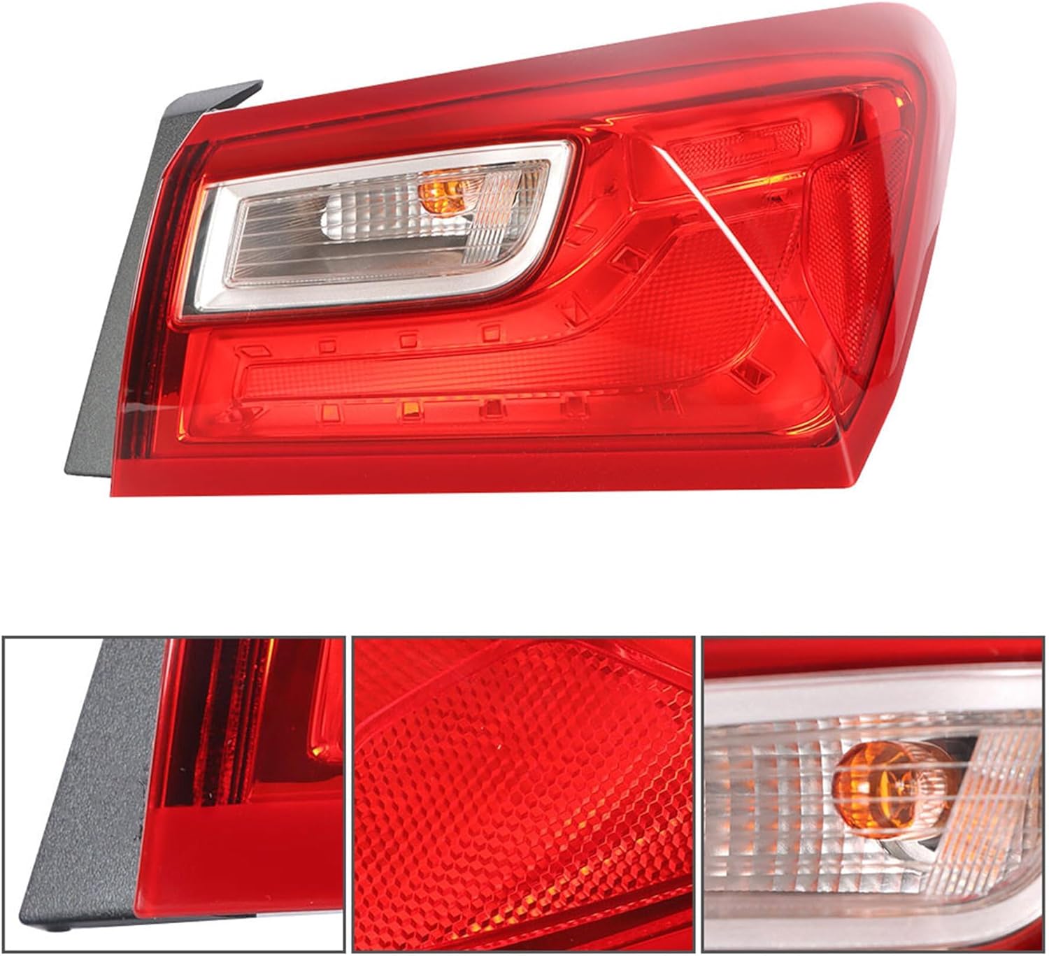 Right Passenger Side Tail Light Brake LampFeatures:Lens Color: Clear & RedHousing Color: ChromeMaterial: ABS Plastic, Polycarbonate LensLighting Technology: IncandescentPlacement on Vehicle: Outer, Rear, RightPart Number: 84132377, GM2805122Fitment:Replacement for 2016 Chevy Malibu Tail LightReplacement for 2017 Chevy Malibu Tail LightReplacement for 2018 Chevy Malibu Tail LightNote:Installation instruction not included; professional installation recommended