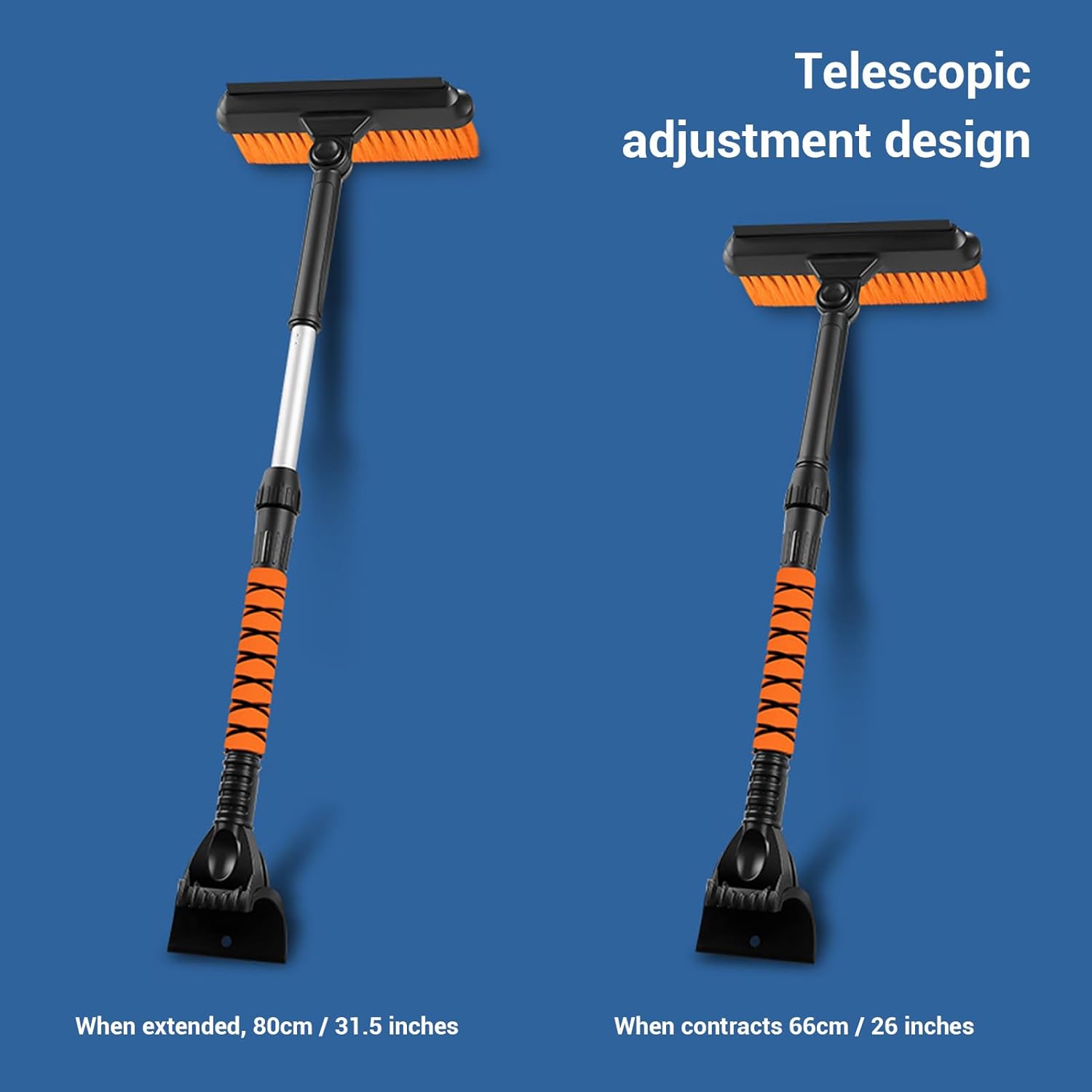 Specification: Item Type: Car Snow Brush Material: PP+EVA sponge + silicone Contract Length: Approx. 66cm / 26in Extended Length: Approx. 80cm / 31.5in PackageList: 1 x Handle 1 x Snow Brush 1 x Ice Shovel Note: