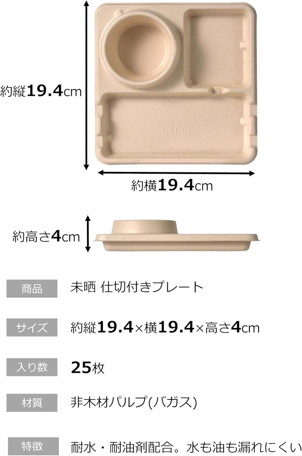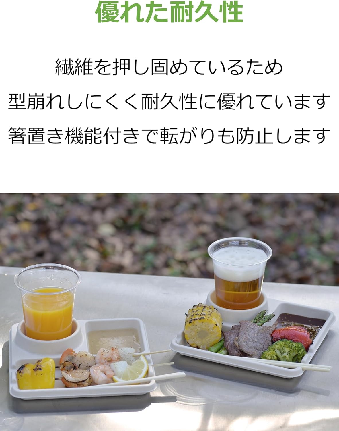 Comes with a divider, making it perfect for outdoor activities such as barbecues. The drink holder can store beer or plastic bottles. Water and oil resistant formula, so you can rest assured even when cooking with a large amount of moisture or oil. Since the fibers are pressed down, it is resistant to losing its shape and durable. Microwave safe, so you can reheat cold dishes. Bagasse refers to squeezing stems and leaves after squeezing from sugarcane. Although bagasse is originally treated as waste, it is an environmentally friendly material that can reduce waste by effectively utilizing it as a non-wood pulp. This product is not PFOA/PFOS free.