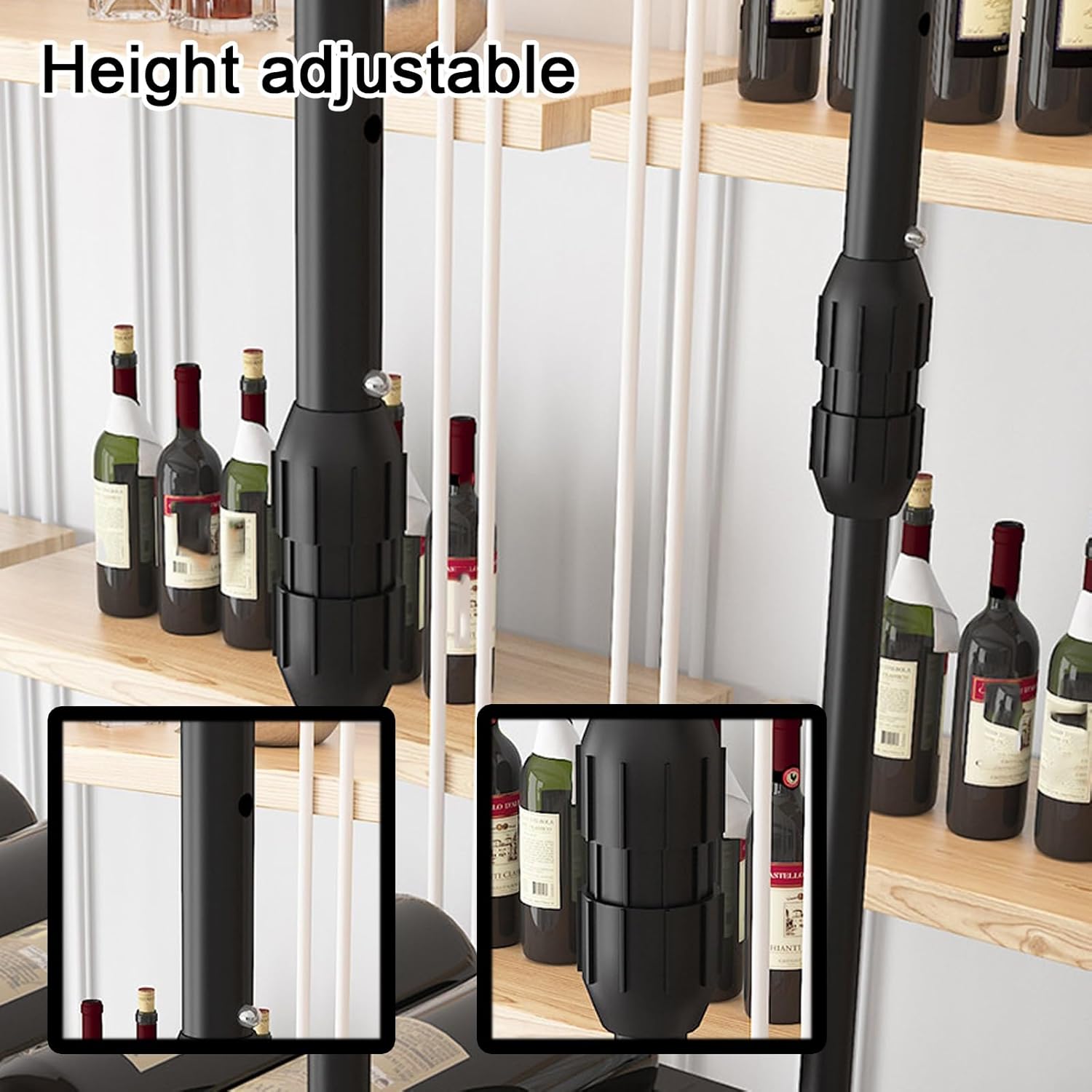 Name: Wine RackMaterial: IronColor: Gold, BlackContents: Wine rack x1 (excludes other items shown in image)Features:1. Equipped with an extendable rod featuring height adjustment, accommodating varying ceiling heights and installation needs to create a perfectly tailored solution for your space2. Integrated bottle rack and inverted glass holder design keeps bottles and glasses neatly organized for easy access, providing a 1-stop storage solution3. Crafted from premium metal with a baked enamel finish, offering acid/alkali tolerance, and durablility wear resistance4. Precision welded joints ensure rust resistance; baked finish delivers a stylish, elegant appearance while enhancing durability.5. Space-saving ceiling-mounted design maximizes floor and countertop space while creating an elegant display for your wine collection and glasses.Dimensions:60x30cm (23.6x11.8")80x30cm (31.5x11.8")100x30cm (39.4x11.8")120x30cm (47.2x11.8")Important Notice:1. All dimensions are manually measured and may vary slightly. Colors may appear slightly different due to shooting angles or lighting conditions.2. This metal product may have weld points and minor surfaces scratches, which do not affect its functionality.